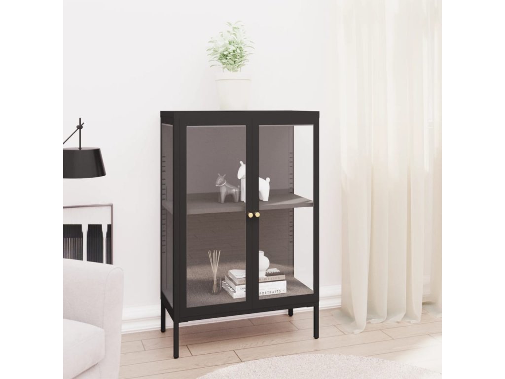 Konštrukcia tejto komody je vyrobená z ocele. Je pevná a odolná, čo zaručuje roky používania. Komoda má v sklenených dvierkach priehradku, ktorá ponúka dostatok úložného priestoru na uloženie a vystavenie vašich kníh, časopisov, DVD, váz a iných dekoratívnych predmetov, ktoré budú dobre usporiadané a na dosah ruky. Policu je možné nainštalovať do rôznej úrovne, aby sa zmenila veľkosť úložného priestoru. Nohy sa dajú ľahko nastaviť na požadovanú výšku a pomáhajú skrinke udržať stabilitu. Skrinka sa ľahko čistí vlhkou handričkou.