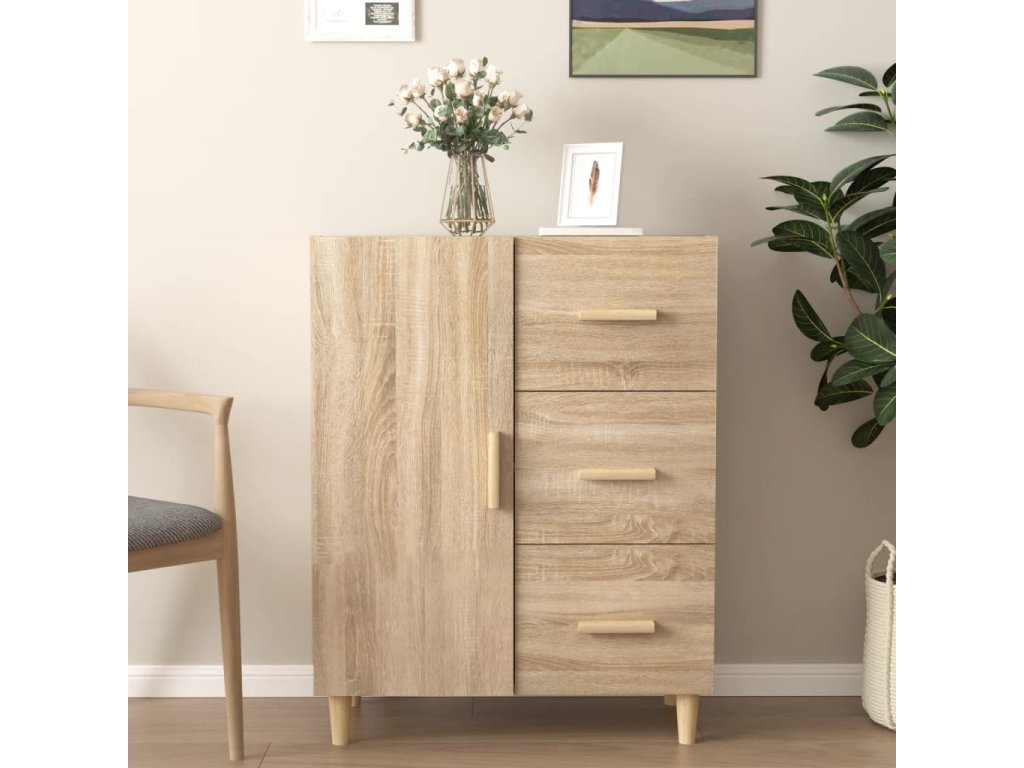 - Dostatok úložného priestoru: Bočná skrinka má 3 zásuvky, ktoré poskytujú dostatok úložného priestoru na uchovávanie rôznych potrieb dobre organizovaných a na dosah ruky.