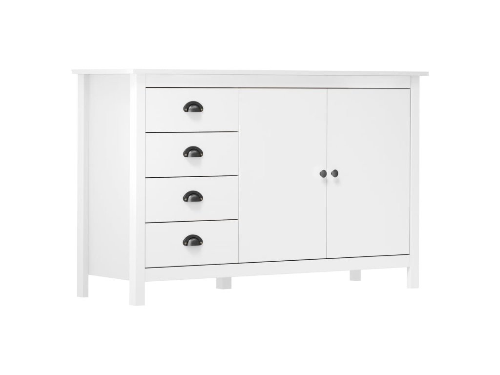 Táto komoda je vyrobená z masívneho borovicového dreva, vďaka čomu je stabilná a robustná. Vďaka 2 dvierkam a 4 priestranným zásuvkám s polkruhovými rúčkami ponúka dostatok úložného priestoru, aby ste mali vaše veci dokonale usporiadané a na dosah ruky.