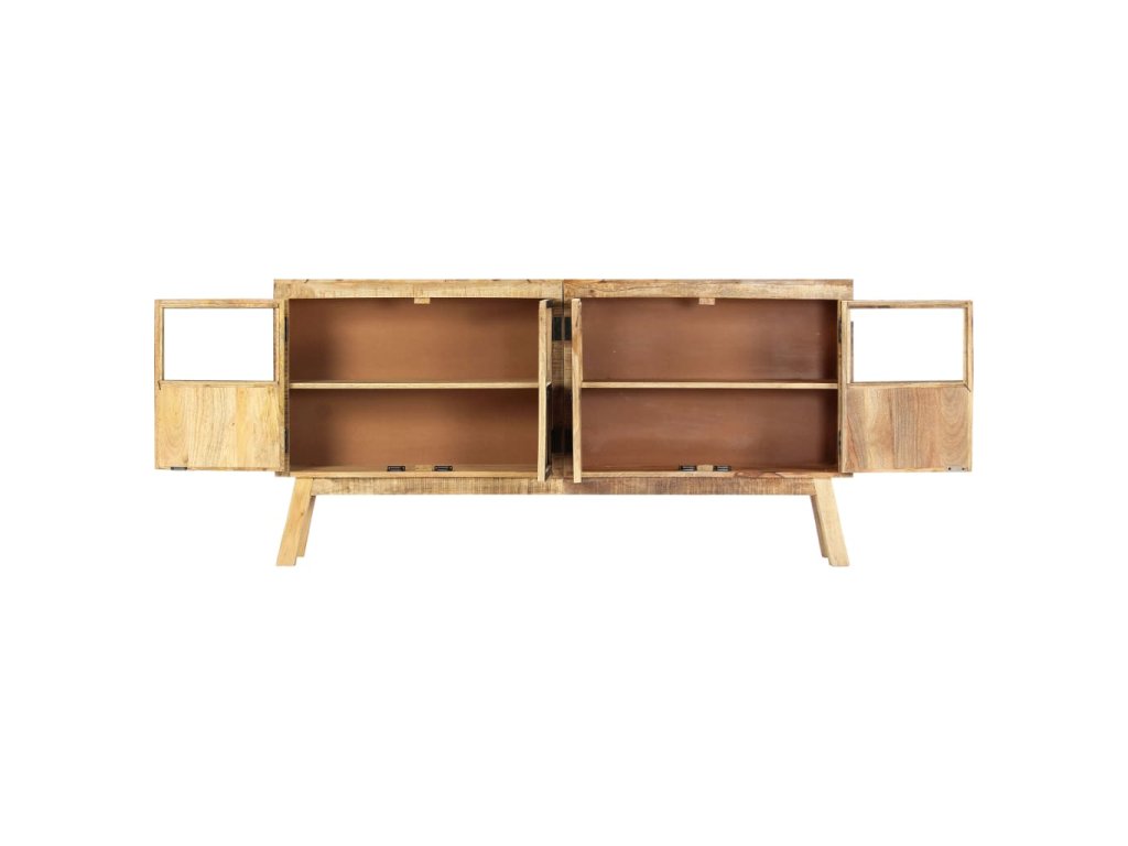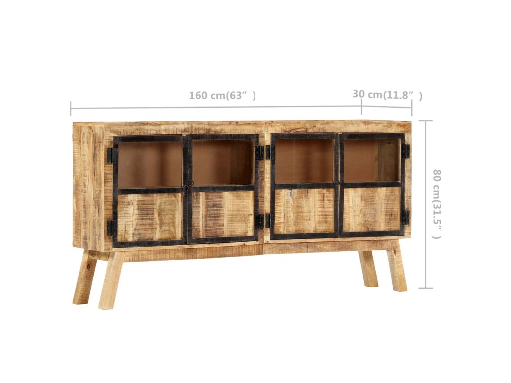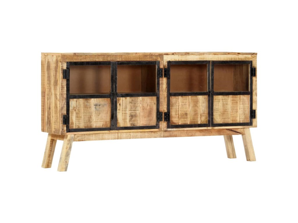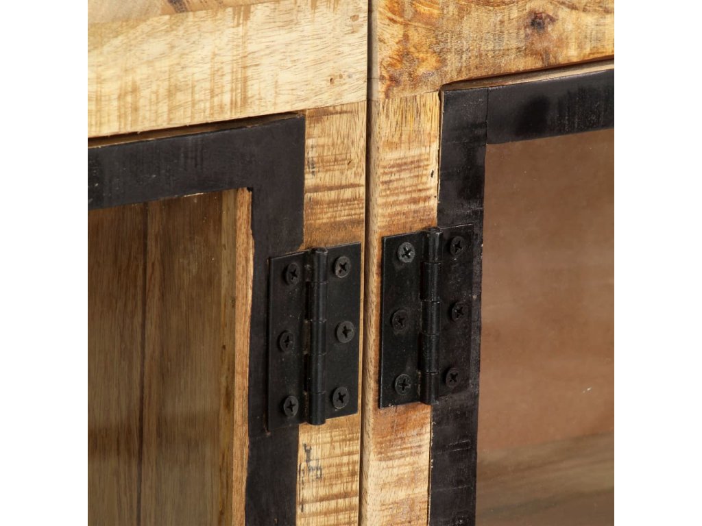 Skrinka je vyrobená z masívneho surového mangovníkového dreva. Je mimoriadne stabilná a odolná. Táto drevená komoda s 2 dvierkami poskytuje dostatok priestoru na uloženie časopisov, kníh, dekorácií a rôznych iných drobností, ktoré chcete mať na dosah ruky. Navyše, dizajn dreveného rámu komode dodáva priemyselný štýl.