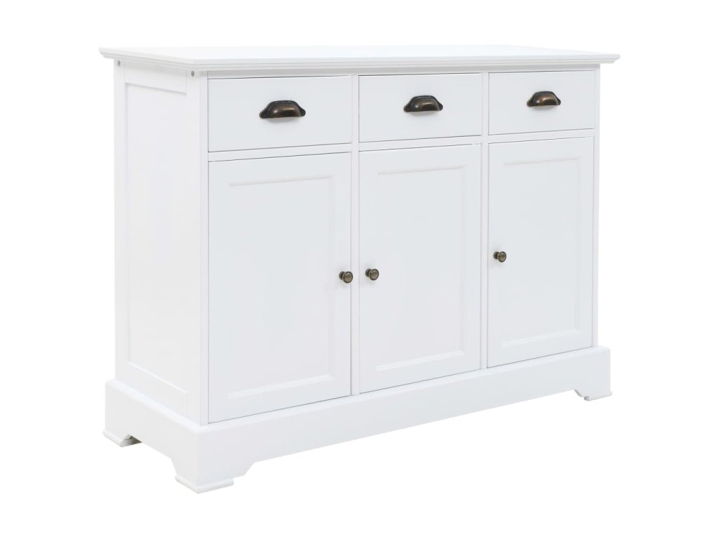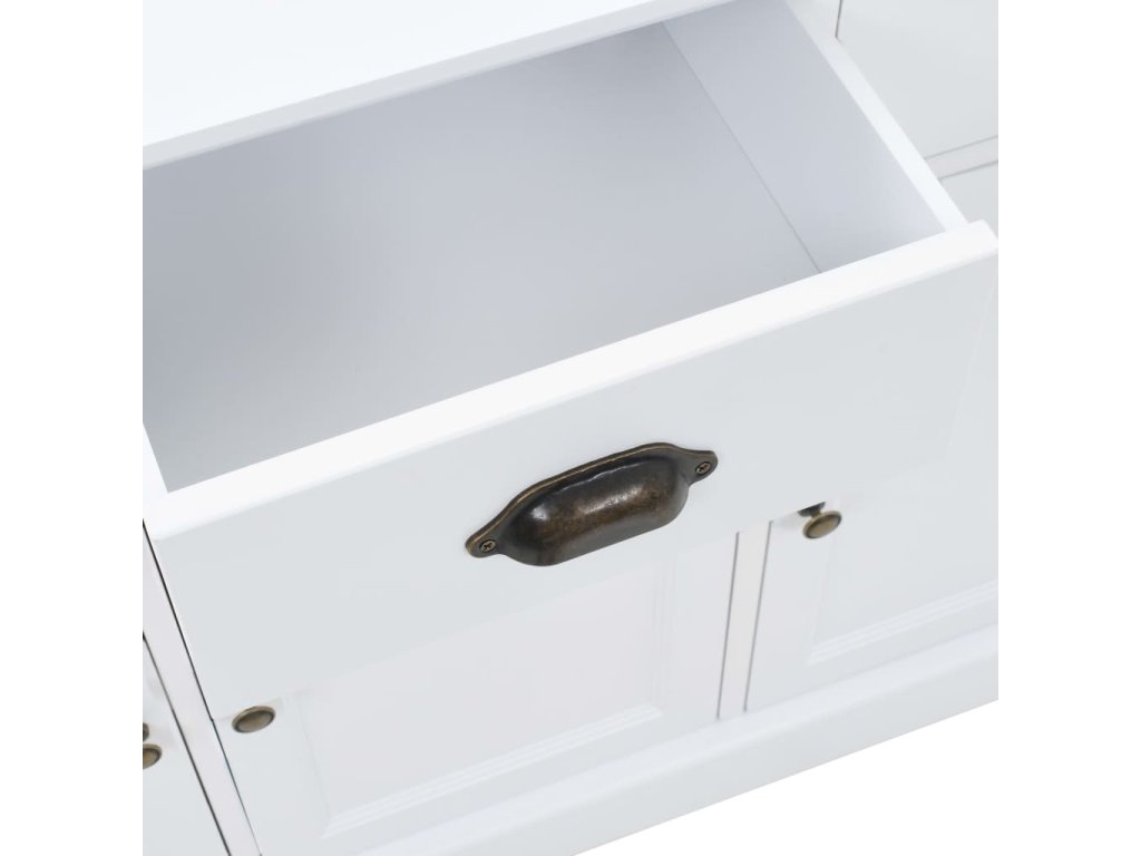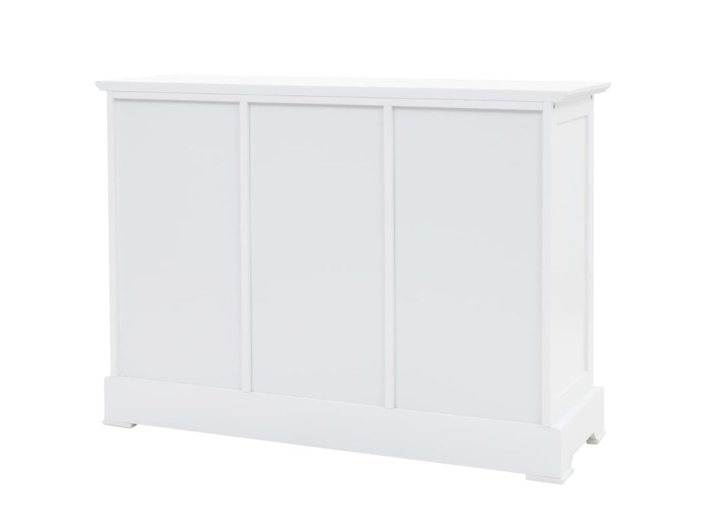 Šatník je vyrobený z MDF a je ozdobený kovovými rúčkami na zásuvkách a dvierkach. 3 zásuvky a 3 veľké skrinky poskytujú množstvo priestoru na odkladanie kníh, multimediálnych zariadení a ďalších premetov. Vrchná doska je ako stvorená na vystavenie rôznych ozdobných predmetov, fotorámikov či kvetov v kvetináči.
