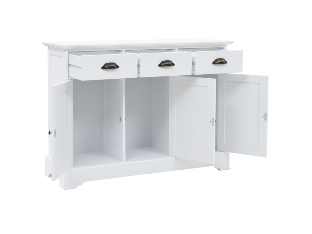 Táto komoda so štýlovým dizajnom a čisto bielym povrchom predstavuje perfektný doplnok do obývačky či akejkoľvek inej miestnosti v dome. Dá sa používať aj ako vysoká skrinka alebo príručná skrinka.