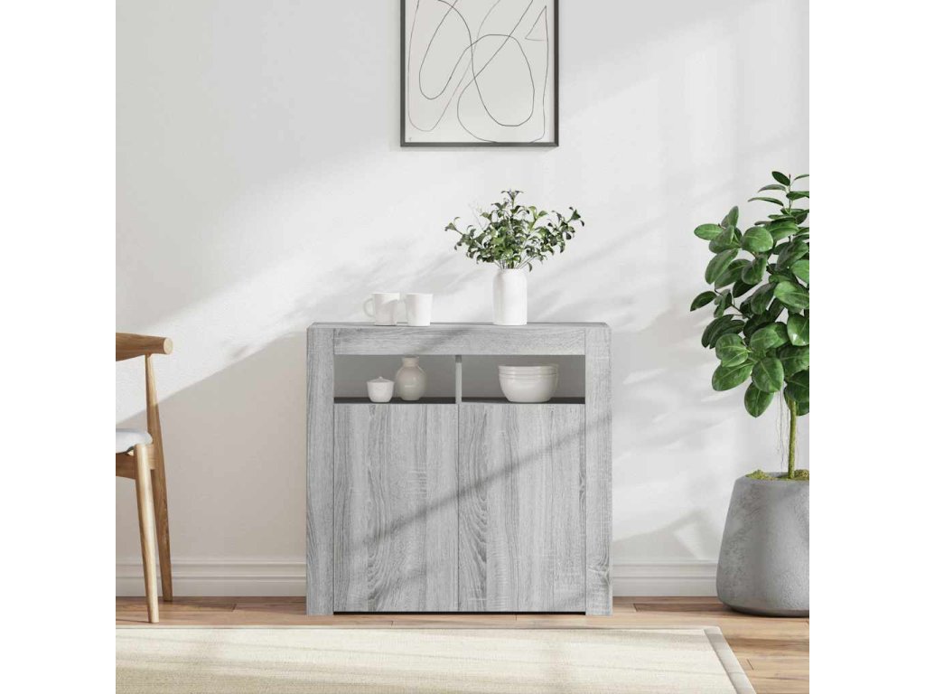 Tento príborník s LED svetlami s minimalistickým dizajnom predstavuje praktický aj vysoko dekoratívny doplnok do vášho domova!