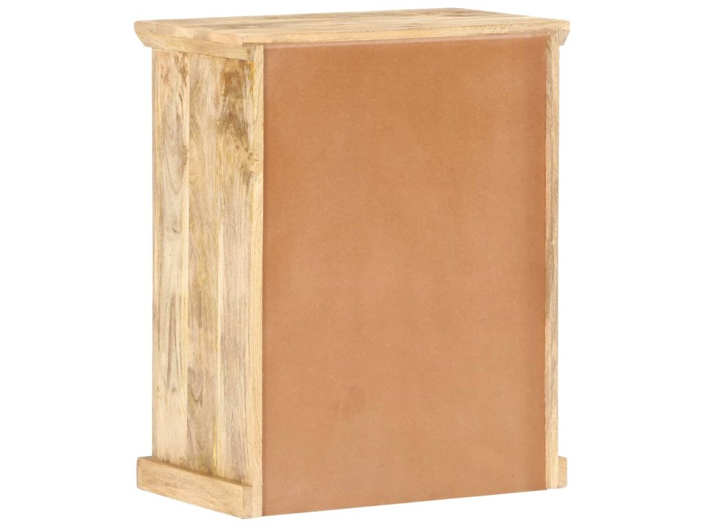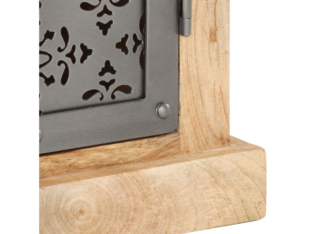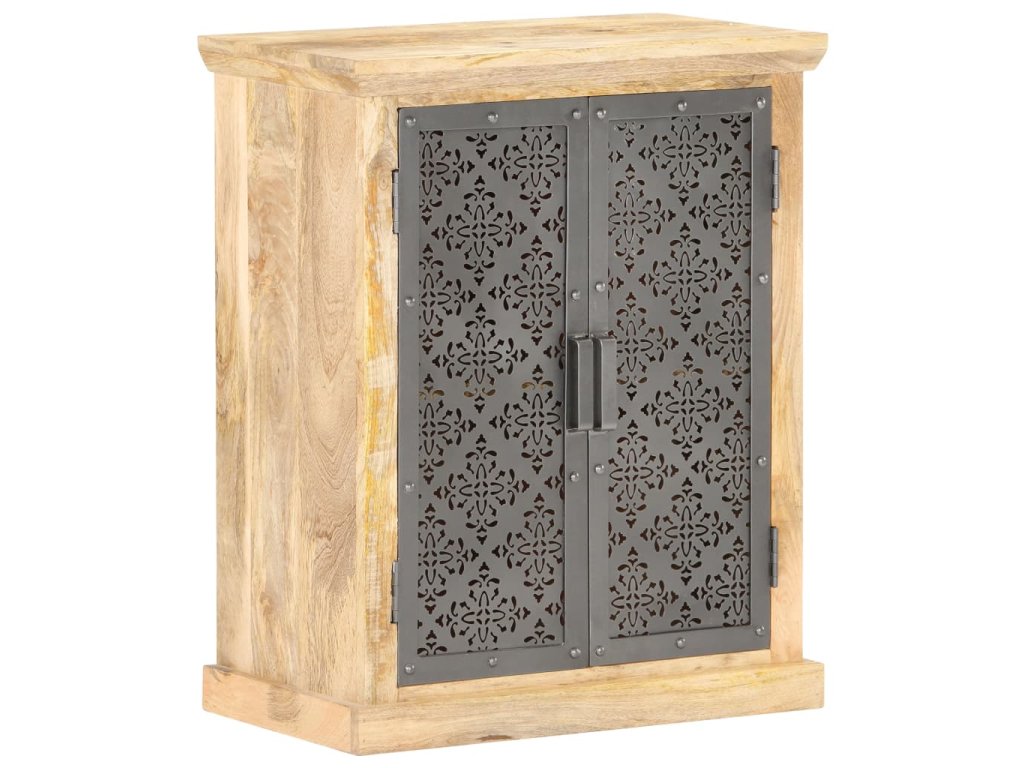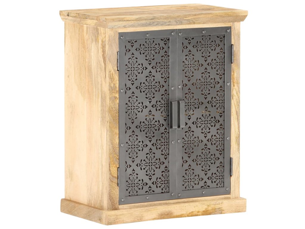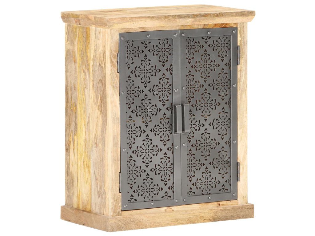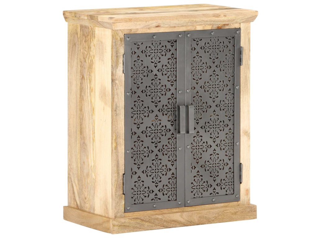 Táto bočná skrinka, vyrobená z mangového masívneho dreva, je nádherne upravená leštením, maľovaním a lakovaním, vďaka čomu vyniká rafinovaným vzhľadom. Oceľové dvere s dierovaným dizajnom skrinke ešte pridávajú na kráse. Ponúka dostatočný úložný priestor pre vaše knihy, časopisy alebo iné predmety, ktoré tak budú ľahko dostupné. Ľahko sa tiež čistí a udržuje vlhkou handričkou.
