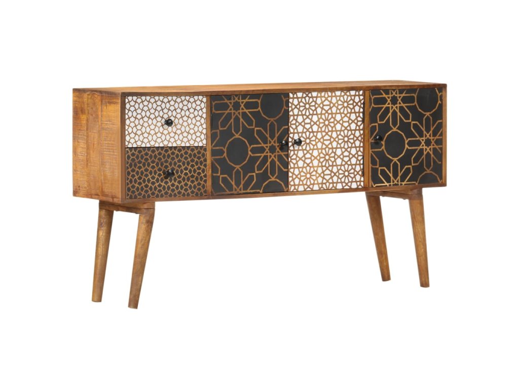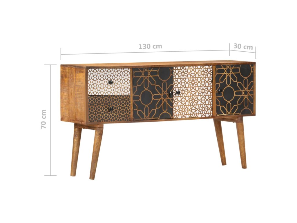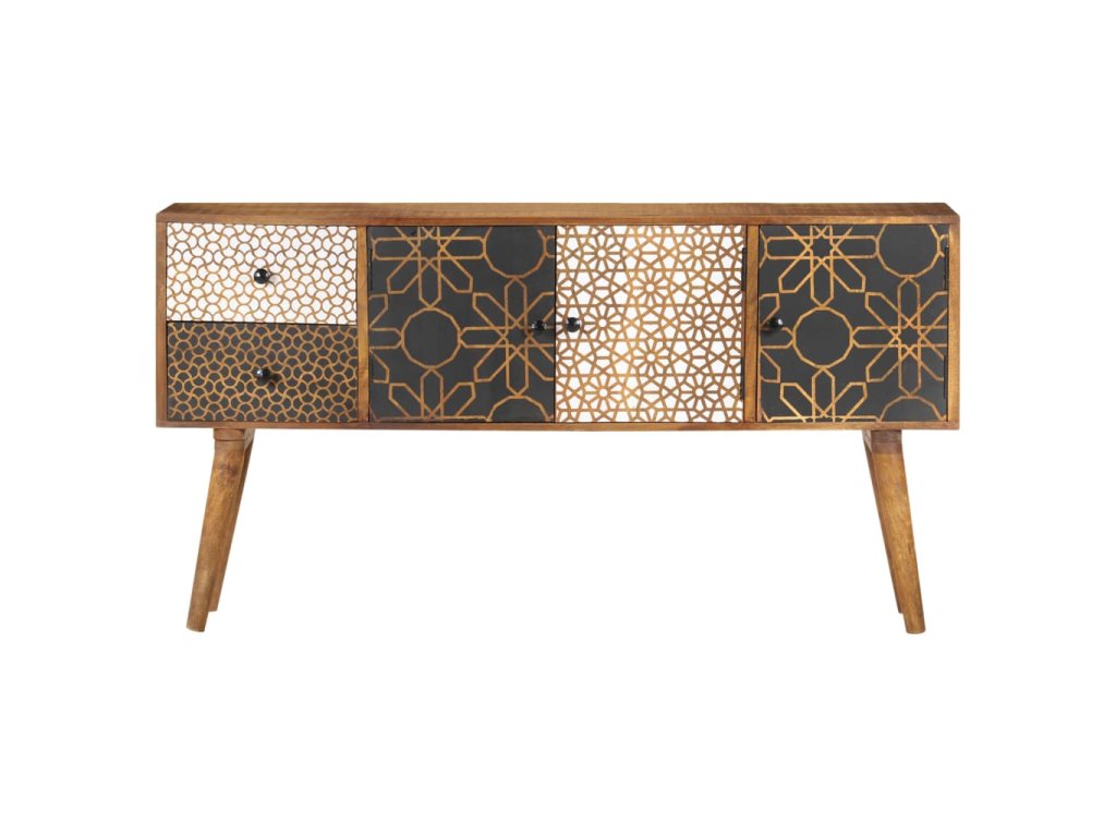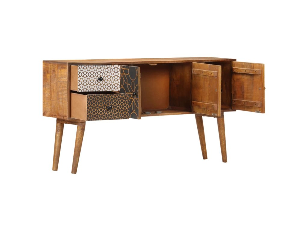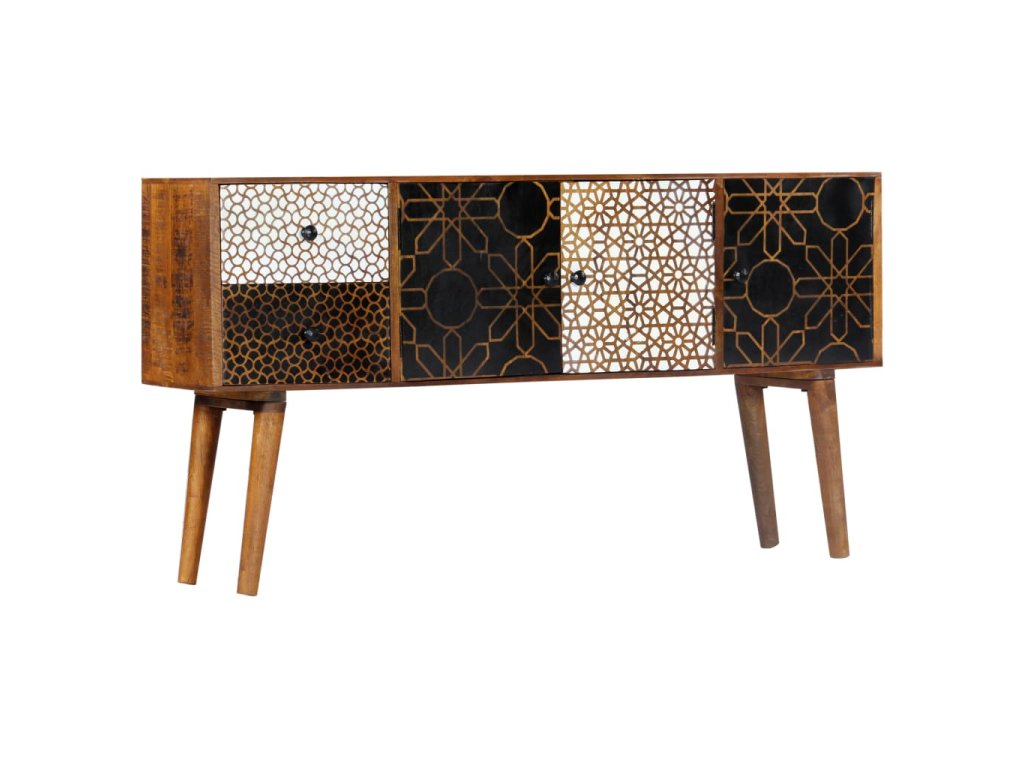 Dodajte luxus inšpirovaný dizajnom z polovice minulého storočia do vášho interiéru pomocou našej krásnej komody! Obsahuje 2 zásuvky a 3 dvierka pre dostatok úložného priestoru. Táto komoda z masívneho mangovníkového dreva bude skutočne praktickým a dekoratívnym doplnkom vášho domova.