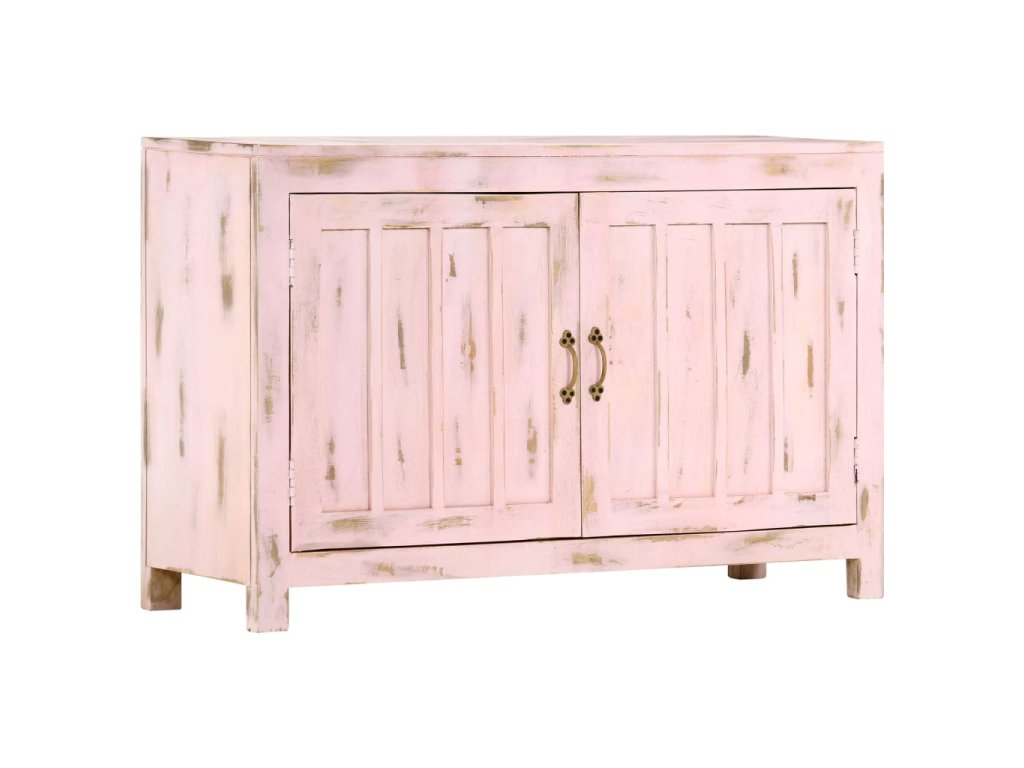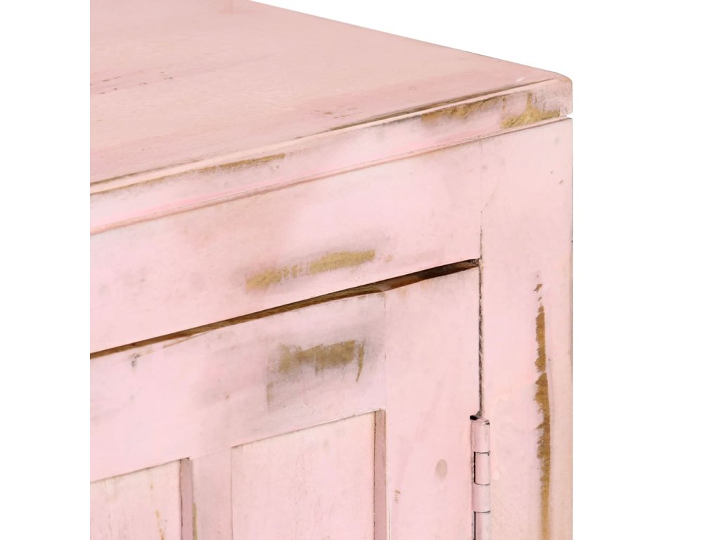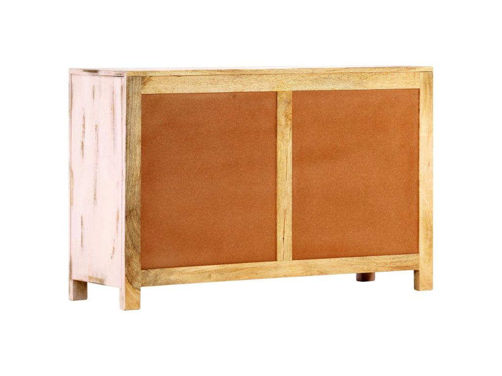 Táto komoda je ručne vyrobená z masívneho mangovníkového dreva, ktoré je pevné, stabilné, odolné a krásne. Remeselné prevedenie jej dodáva úžasný retro štýl. Každý krok výrobného procesu je robený s tou najväčšou starostlivosťou, či už sa jedná o leštenie, lakovanie alebo natieranie. Vďaka remeselnému prevedeniu a nádhernej štruktúre dreva je každý kus tohoto nábytku jedinečný a trochu odlišný od ostatných kusov. Komoda má skrinku s dvoma dvierkami a poskytuje veľký úložný priestor pre denné potreby.