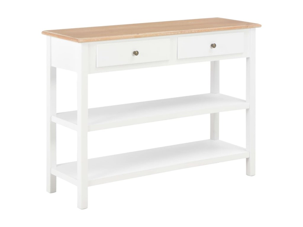 Táto komoda je vyrobená z drevotriesky (MDF). Je mimoriadne pevná a odolná. Bočná skrinka má 2 zásuvky a 2 police, ktoré poskytujú dostatočný priestor na uloženie predmetov, ako sú kľúče, poznámkové bloky, perá a ďalšie drobnosti, ktoré potrebujete mať na dosah ruky. Veľká vrchná doska je navyše ideálna na umiestenie multimediálnych zariadení alebo na zobrazovanie ozdobných predmetov. Montáž komody je jednoduchá.
