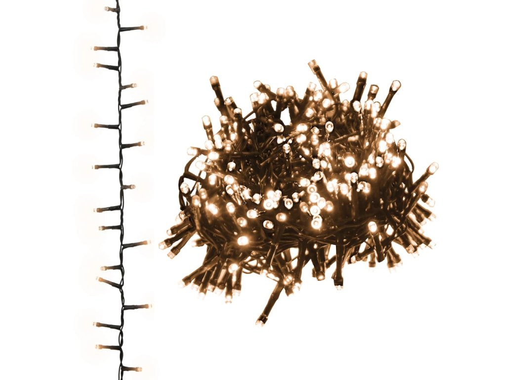 - Dlhá svetelná reťaz: Celková dĺžka reťaze je 45 m a nachádza sa na nej 2000 LED diód, ktoré vytvárajú príjemné a útulné teplé biele osvetlenie.