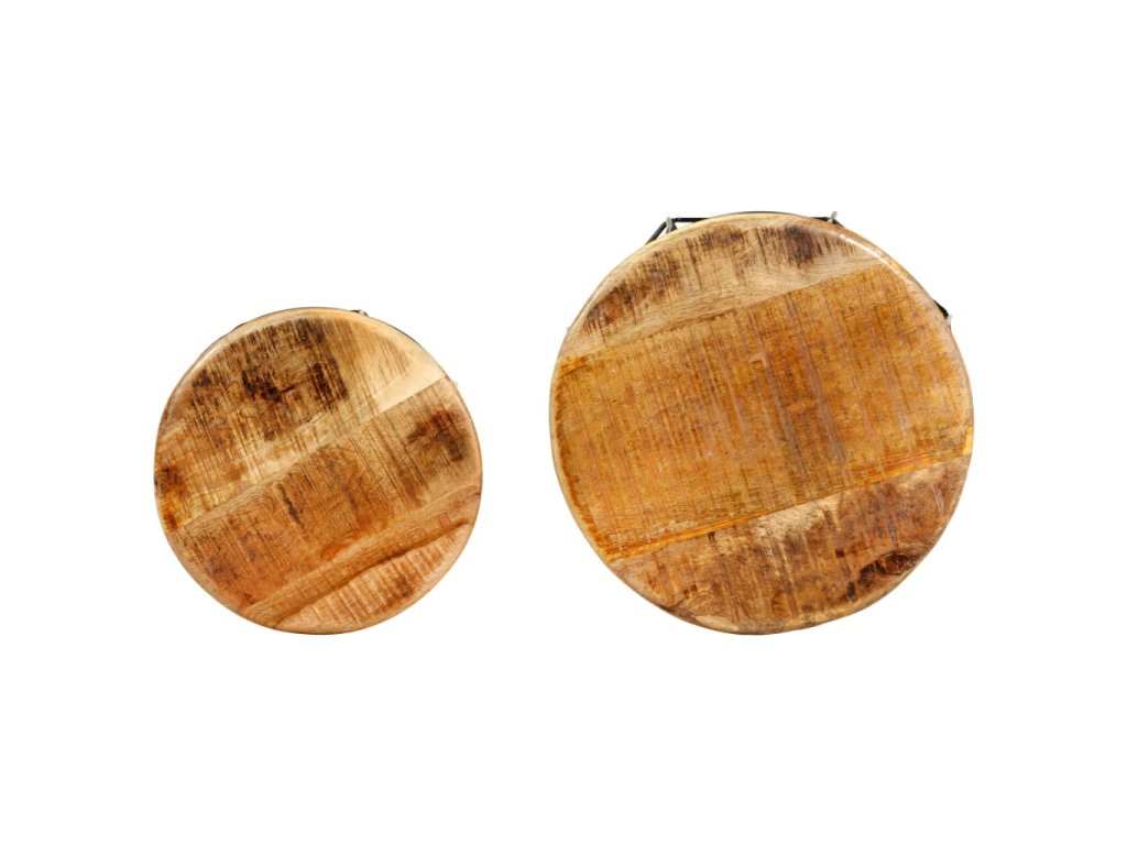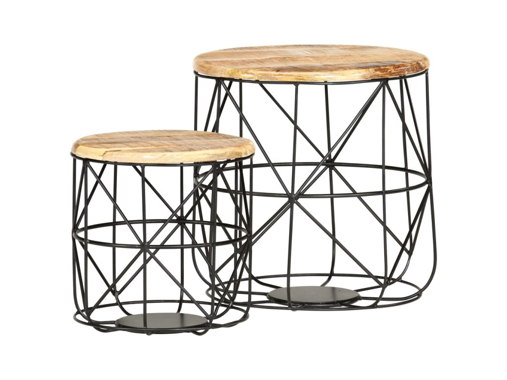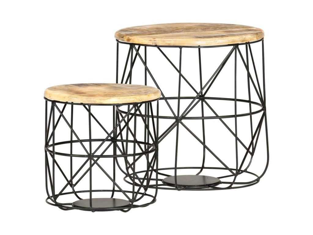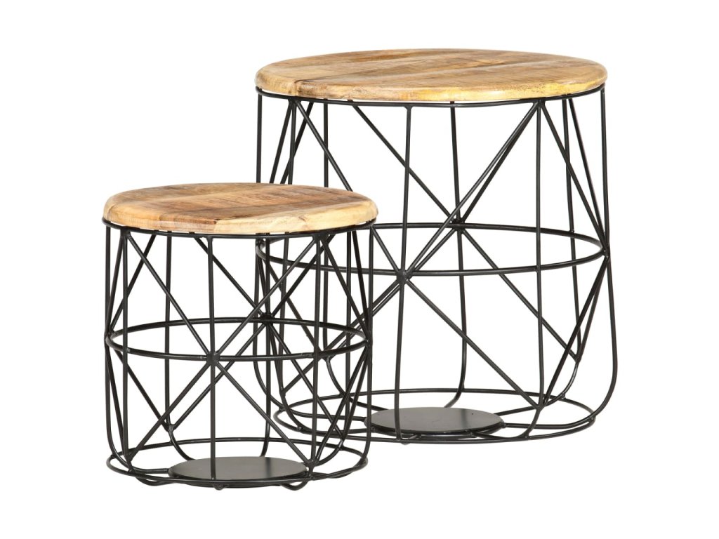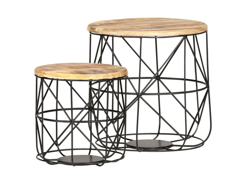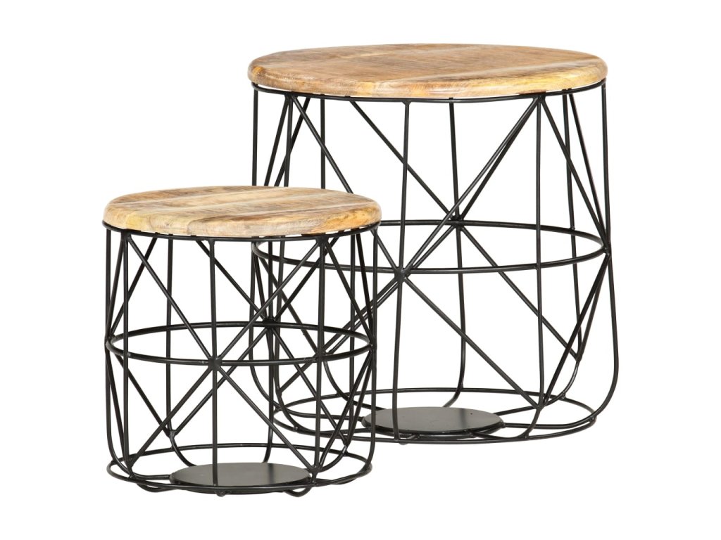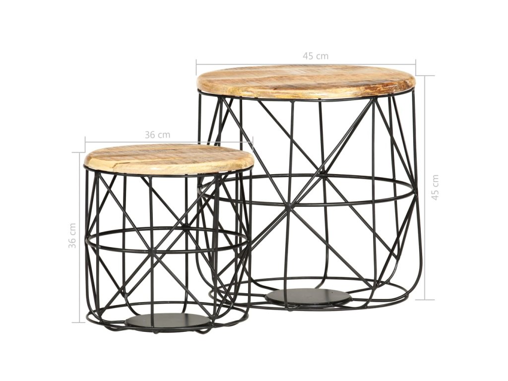 Táto súprava pozostáva z 2 drevených konferenčných stolíkov rôznych rozmerov, ktoré majú starožitný vzhľad a predstavujú nadčasový doplnok do každej domácnosti. Dosky z masívu poskytujú stabilné a bezpečné miesto, na ktoré si môžete položiť poháre, vázu s kvetmi, ovocie alebo ozdobné predmety.