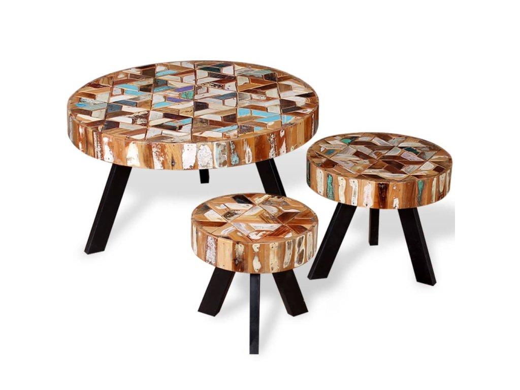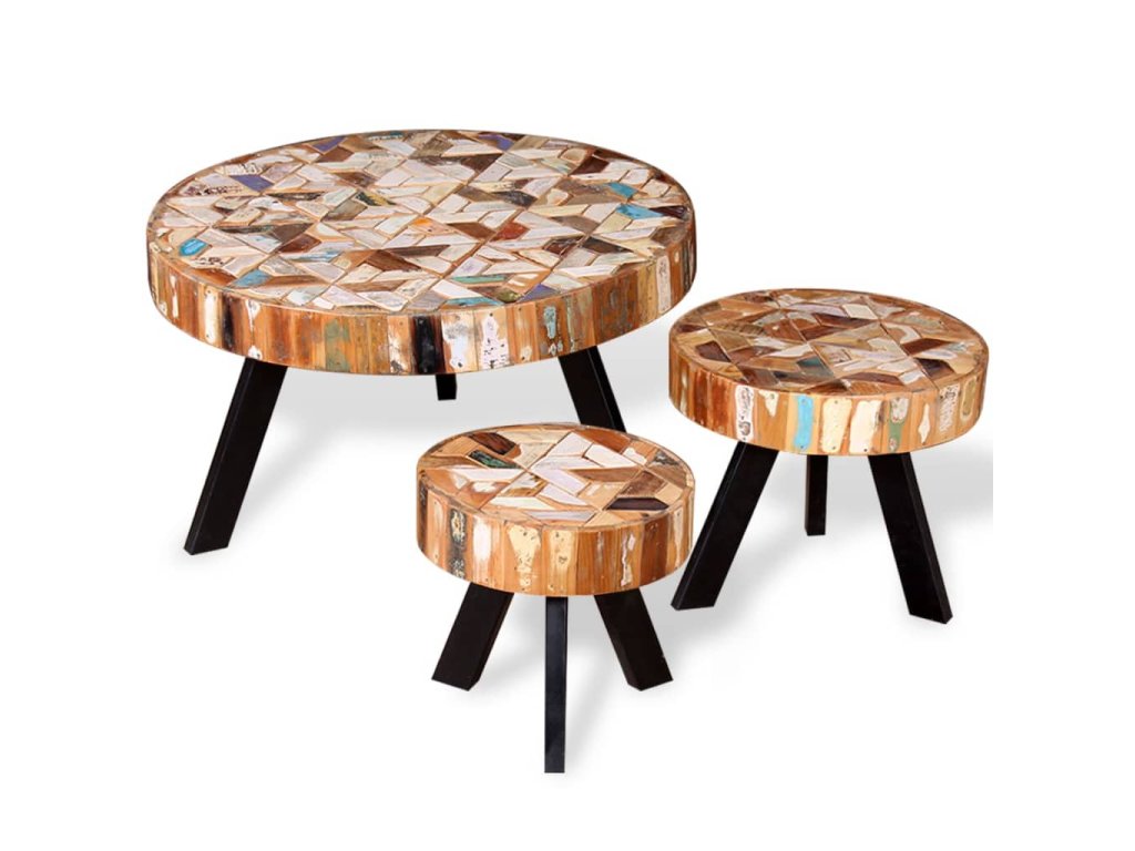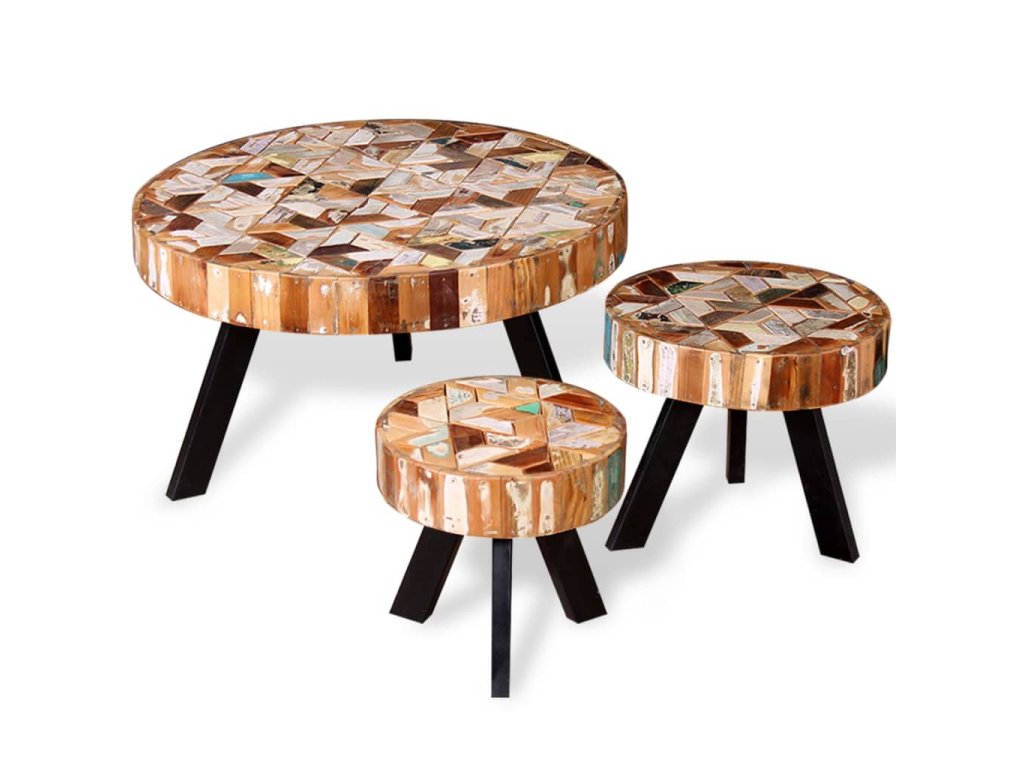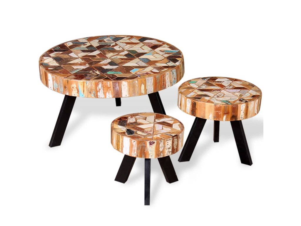 Konferenčné stolíky sú ručne vyrobené z recyklovaného dreva, ktoré je pevné, trvácne a krásne a má podobné vlastnosti ako napríklad tíkové, mangové, akáciové, recyklované, tvrdé drevo a podobne. Každý krok výrobného procesu sa vykonáva s najväčšou starostlivosťou, či už je to leštenie, natieranie alebo lakovanie a profesionálne spracovanie len umocňuje pôsobivý retro vzhľad stolíkov. Vďaka krásnej textúre dreva je každý kus nábytku jedinečný a trochu odlišný od ostatných. Rámy sú vyrobené z trvácneho železa, ktoré stolíkom dodáva robustnosť.