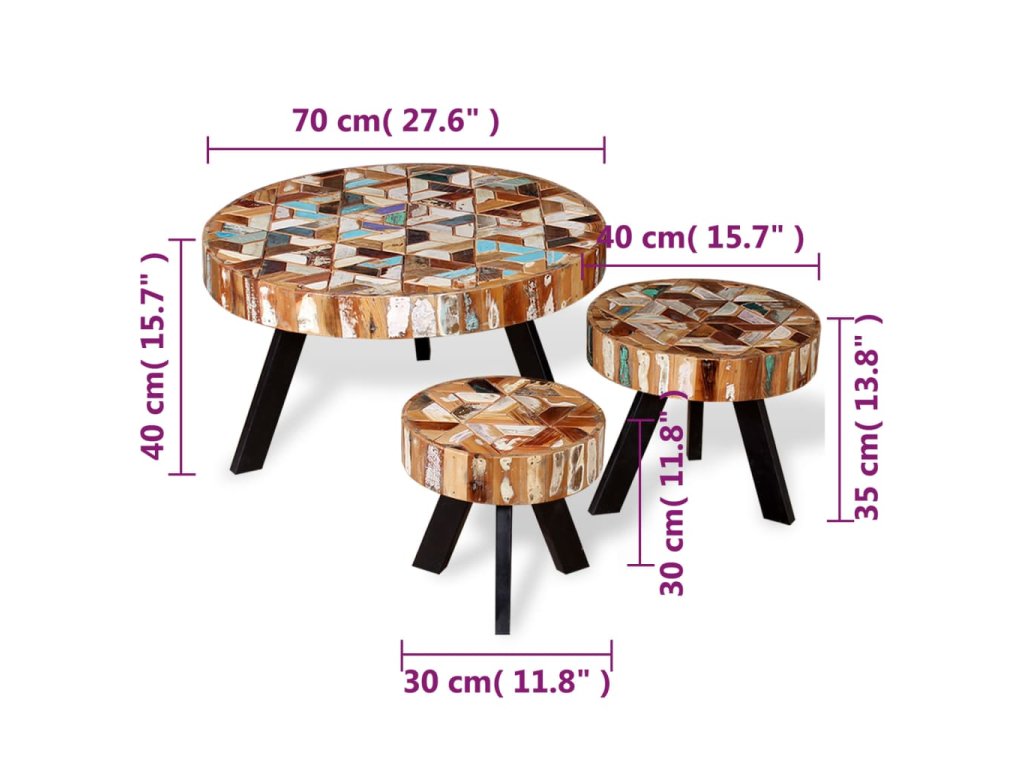 - Rozmery (malý stolík): 30 x 30 cm (Priemer x V)