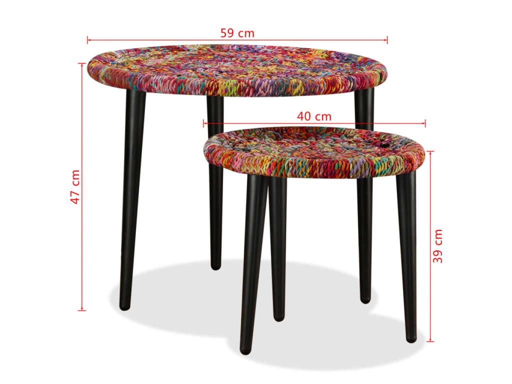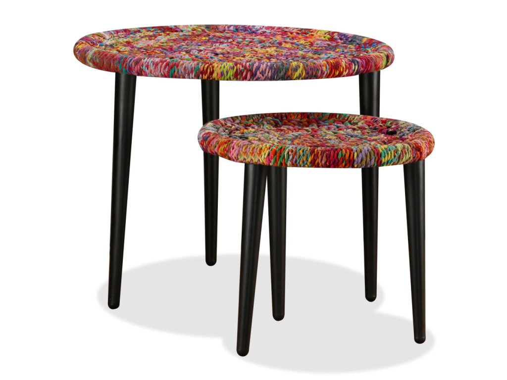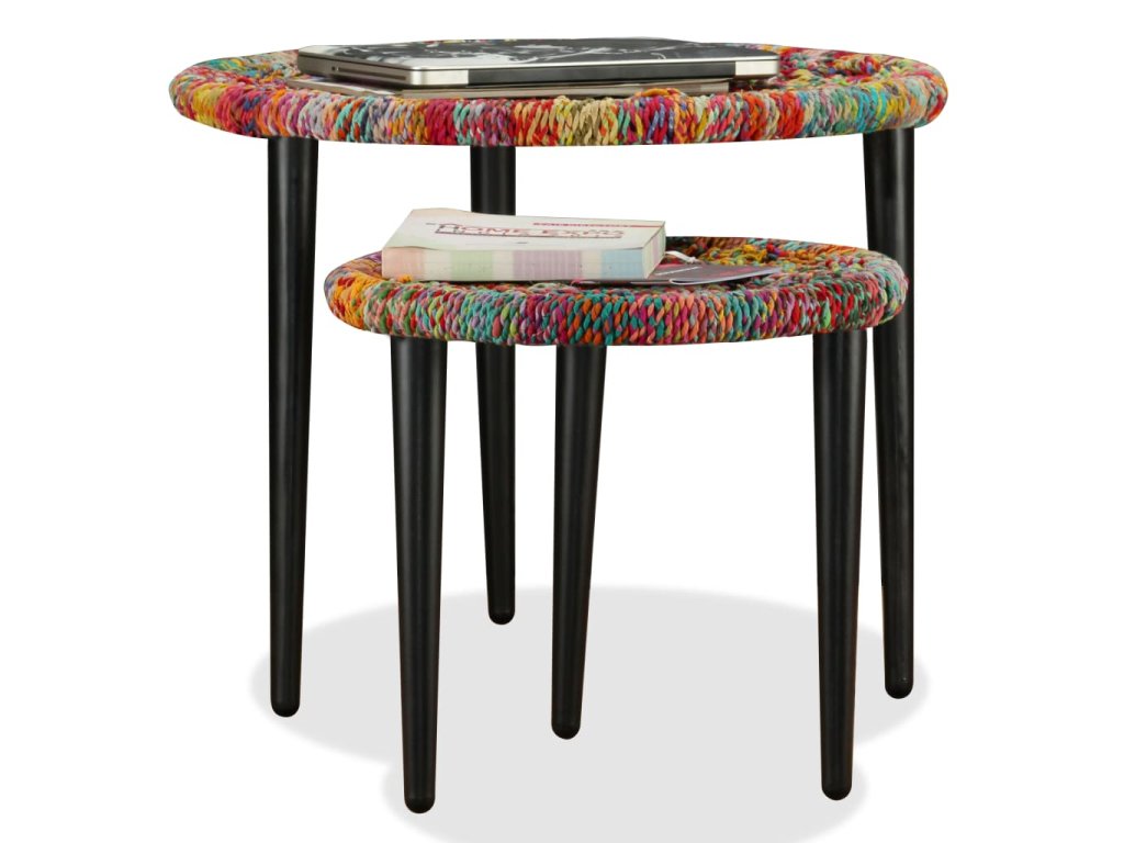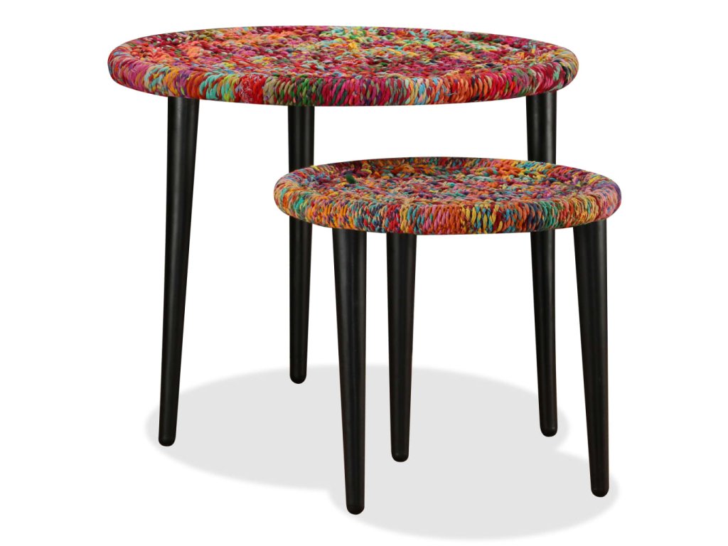 Táto sada 2 ručne vyrobených konferenčných stolíkov s krásnymi farebnými prvkami chindi predstavuje štýlový doplnok do každej obývačky.