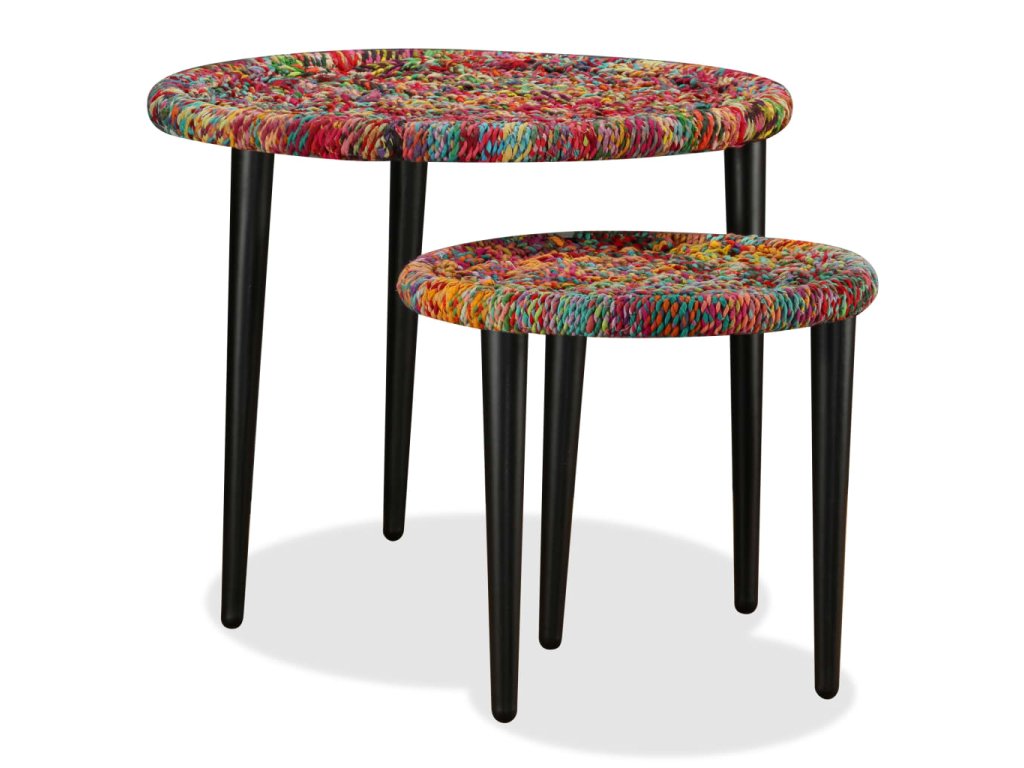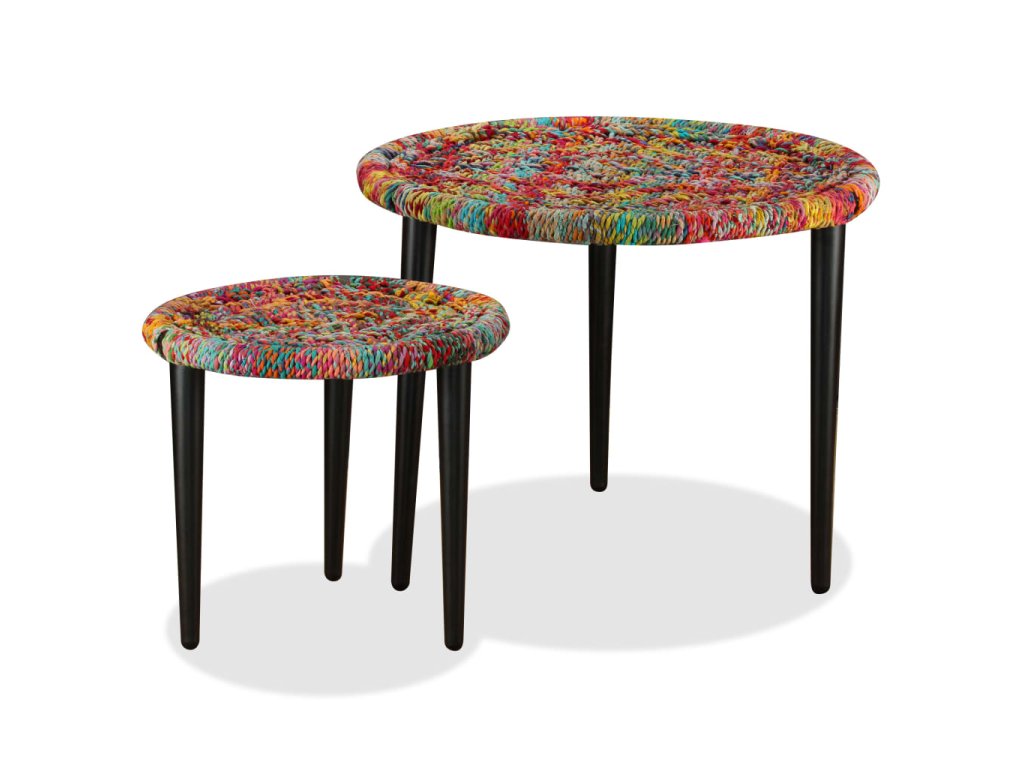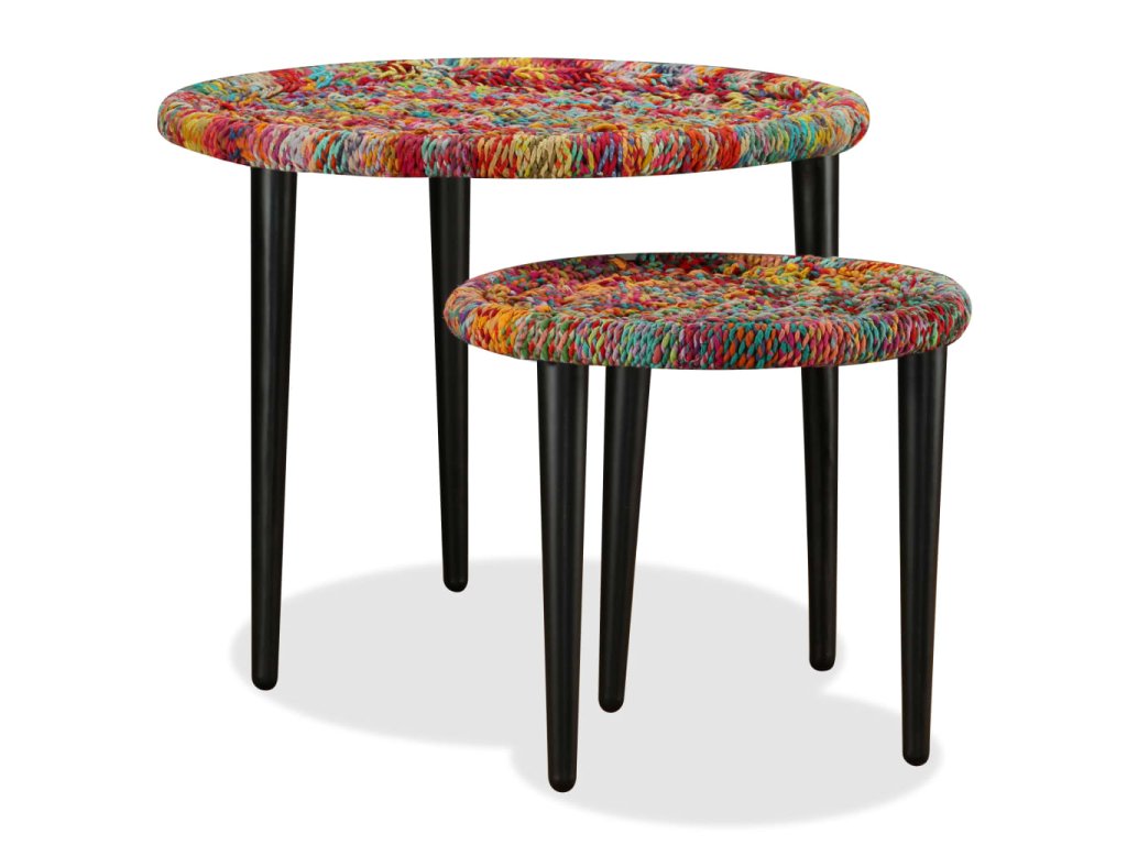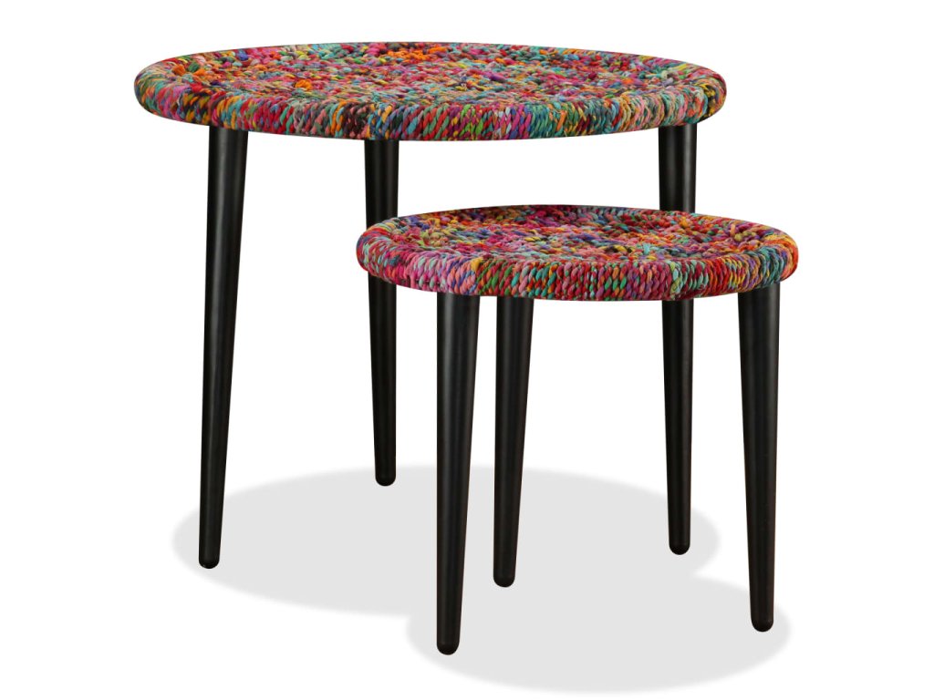 Táto sada 2 ručne vyrobených konferenčných stolíkov s krásnymi farebnými prvkami chindi predstavuje štýlový doplnok do každej obývačky.
