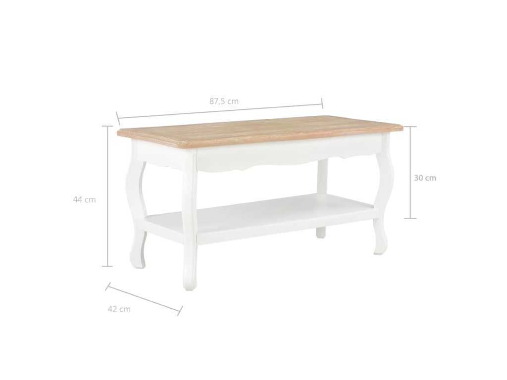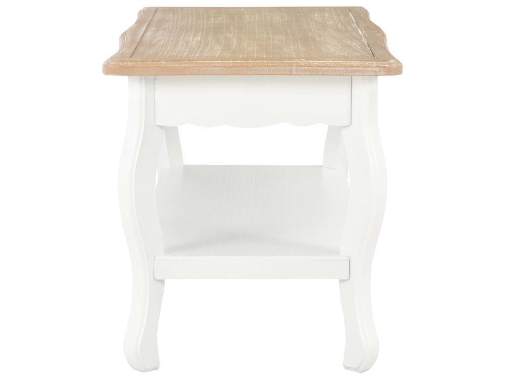 Stolík ku gauču je vyrobený z MDF a borovicového masívu, vďaka čomu je mimoriadne robustný a trvácny. Konferenčný stolík s 1 poličkou poskytuje množstvo priestoru na odkladanie časopisov, kníh, ovládačov či rôznych drobností, ktoré tak budete mať vždy poruke. Stolík má zaujímavý dizajn vo francúzskom štýle. Konferenčný stolík sa jednoducho montuje.