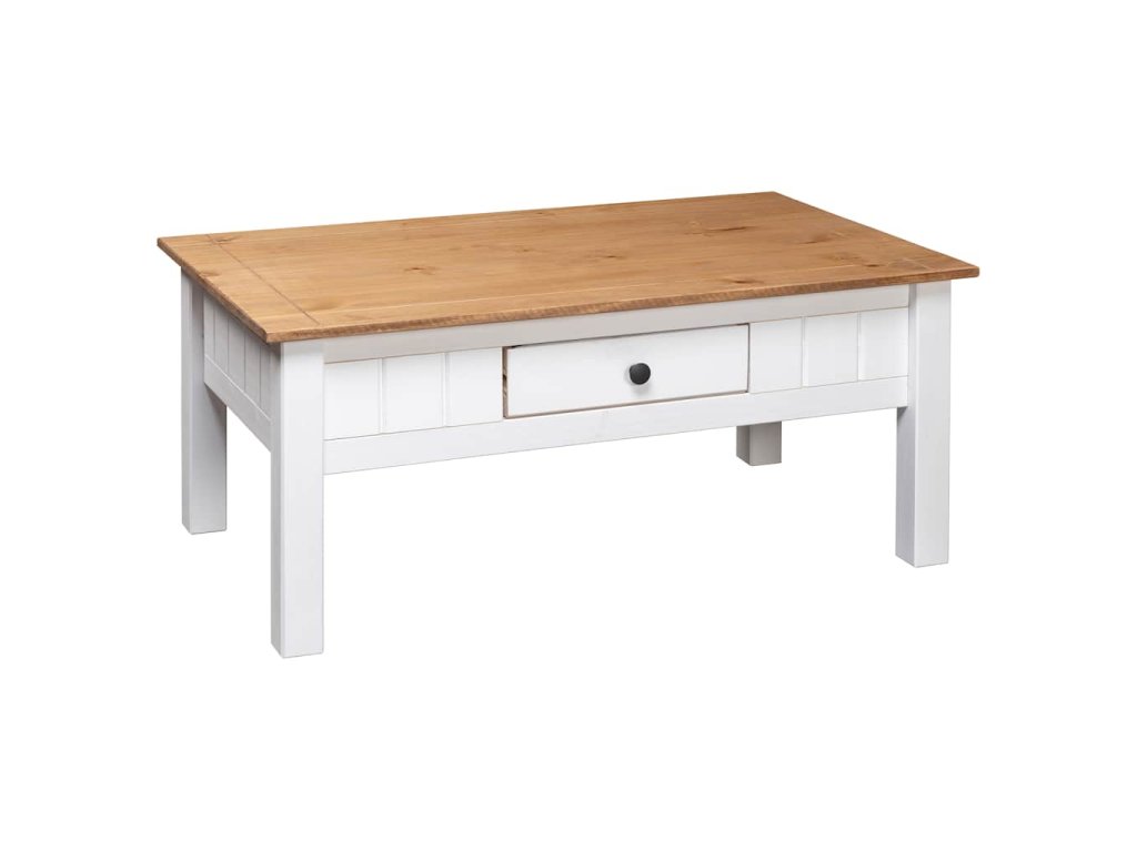 Stolík ku gauču je vyrobený z borovicového masívu, vďaka čomu je mimoriadne robustný a trvácny. Konferenčný stolík má zásuvku, ktorá poskytuje priestor na odkladanie časopisov, kníh, ovládačov či rôznych drobností, ktoré tak budete mať vždy poruke.