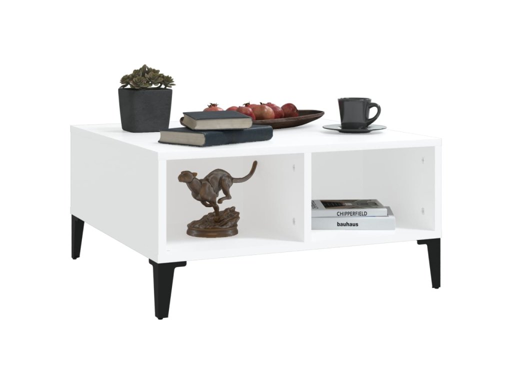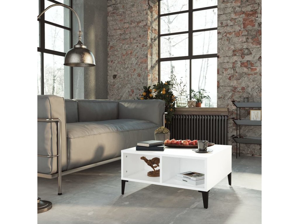 Tento stredový stolík je vyrobený z kompozitného dreva, vďaka čomu je pevný, trvácny a má dlhú životnosť. Kovové nohy mu dodávajú potrebnú stabilitu. Príručný stolík má 4 priečinky, ktoré poskytujú množstvo úložného priestoru. Na pevnú stolovú dosku si môžete položiť nápoje, jedlá či rôzne dekoratívne predmety. Stolík do obývačky sa navyše dá ľahko očistiť navlhčenou handričkou.