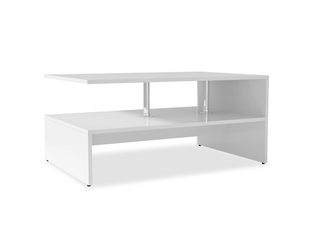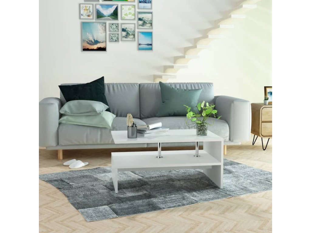 Konferenčný stolík je vyrobený z kompozitného dreva s PVC hranami a je stabilný a trvácny. Príručný stolík pozostáva z dvoch poličiek, ktoré sú na jednej strane spojené a sú podopreté piliermi z nehrdzavejúcej ocele, ktoré mu dodávajú moderný vzhľad. Medzi hornou a spodnou poličkou sa nachádza veľký priestor, vďaka ktorému je tento odkladací stolík veľmi praktický, pretože si doň môžete odložiť knihy, dokumenty či iné potreby.