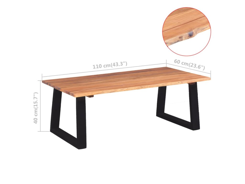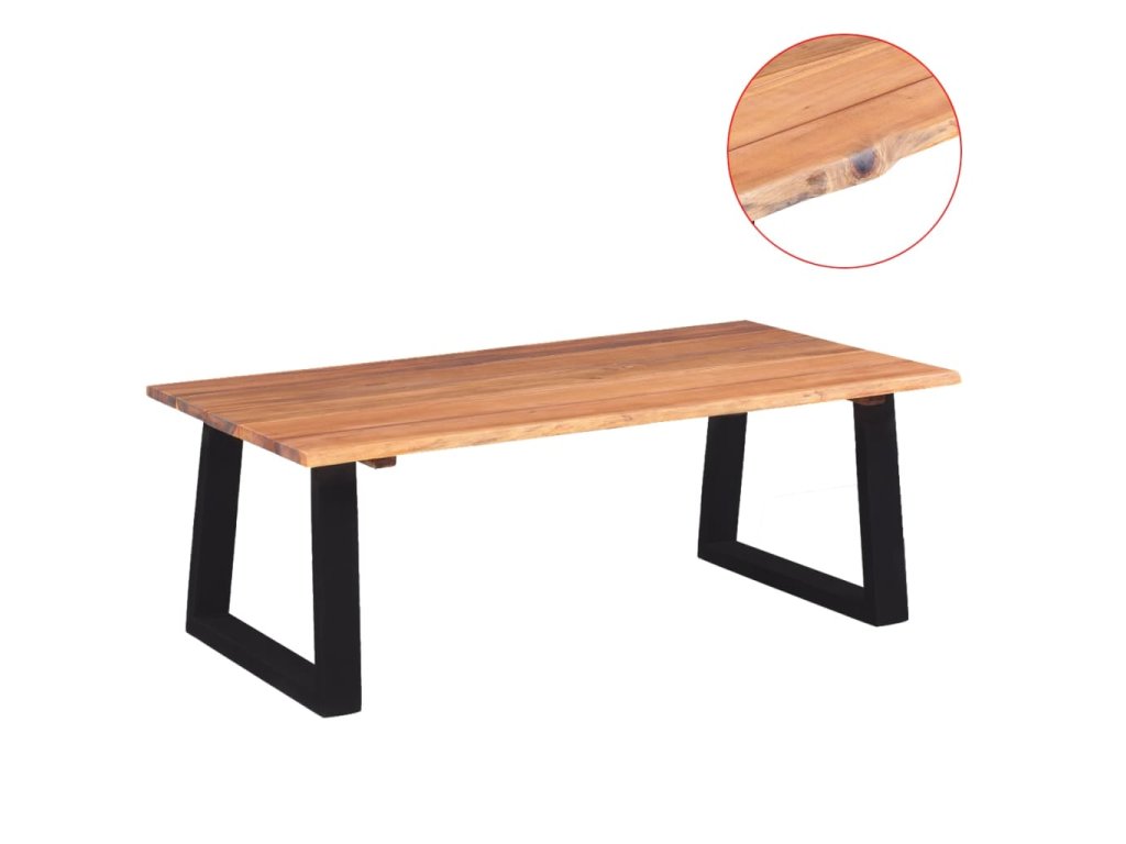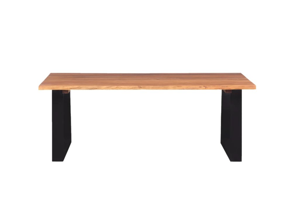 Stolová doska je vyrobená z pevného, masívneho akáciového dreva. Vďaka jedinečným kovovým nohám v tvare písmena "U" má stôl priemyselný štýl a je veľmi stabilný. Živý okraj dreva, ktorý vystihuje prirodzený tvar stromu, dodáva stolu krásny vzhľad.