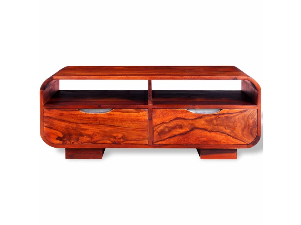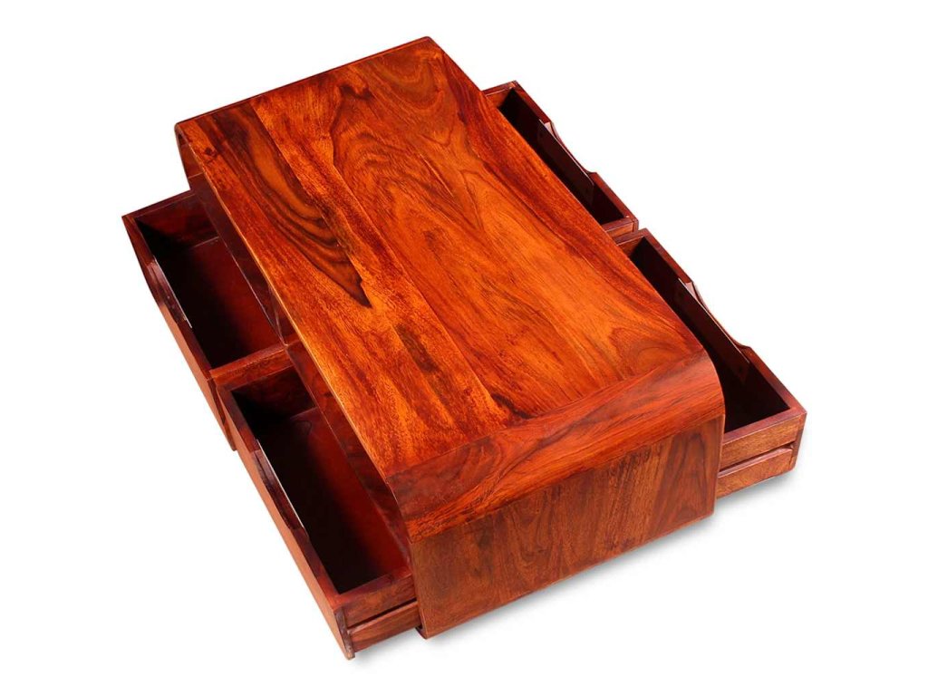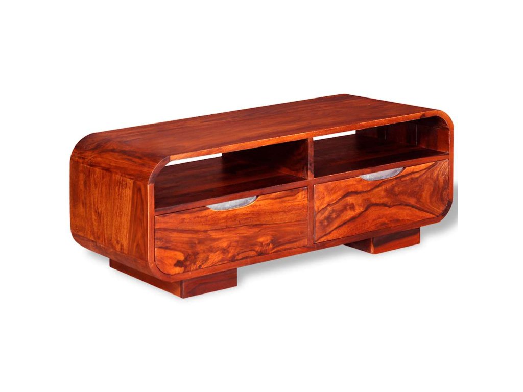 Tento konferenčný stolík je vyrobený z masívneho dreva akácie, čo je tropické drevo vyznačujúce sa svojou štruktúrou. Je známe aj pod menom palisander. Remeselné spracovanie a krásne vzory dreva zaručujú, že je každý kus nábytku unikátny a trochu odlišný od ďalšieho.