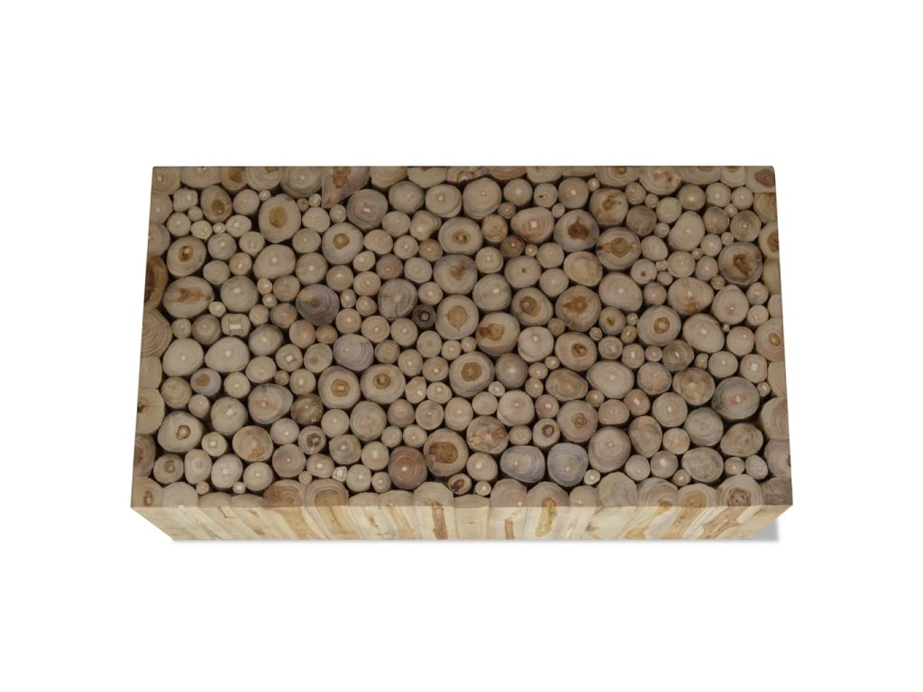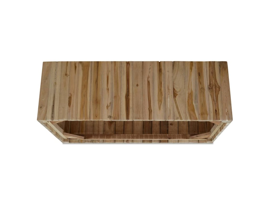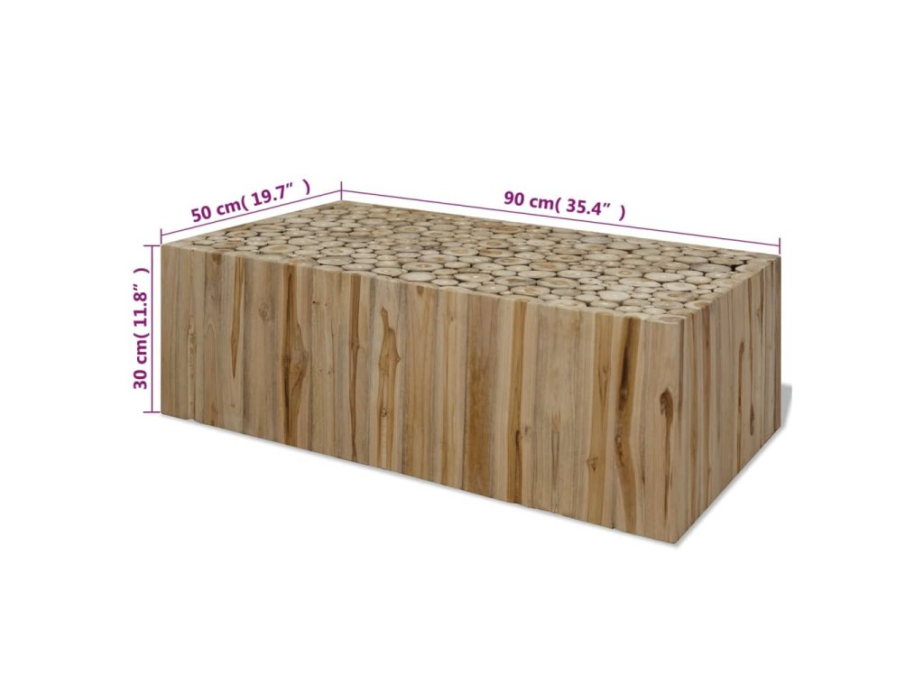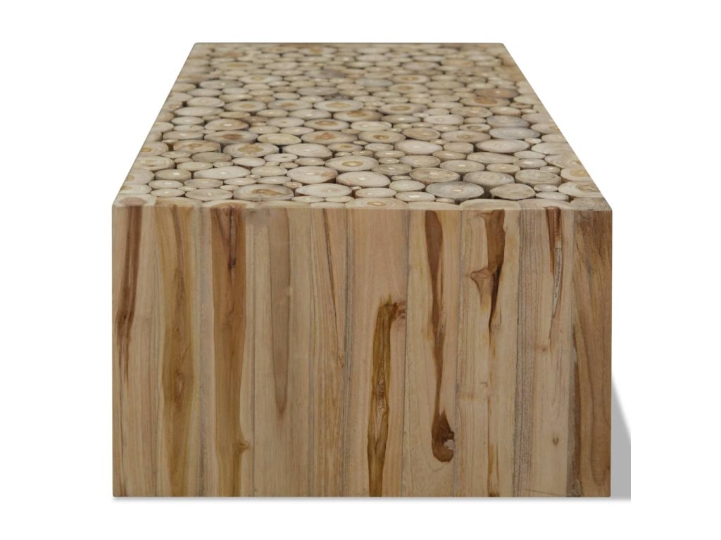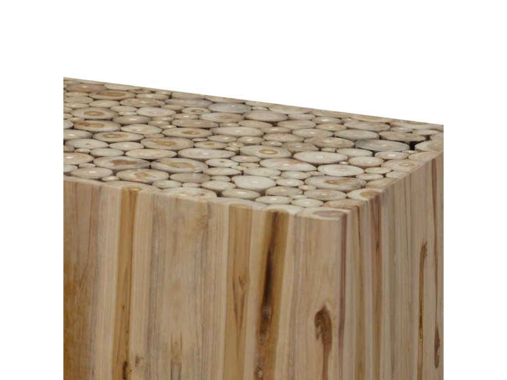 Tento trvácny a krásny stolík je vyrobený z rezov z pravého teakového dreva, ktoré napodobňujú vzhľad naukladaných polien. Je veľmi odolný, trvácny a stabilný, a je ideálny na umiestnenie nápojov, váz, rastlín v črepníkoch, ovocných košov a iných dekoratívnych predmetov. Stolík je vopred namontovaný; žiadna dodatočná montáž nie je potrebná.