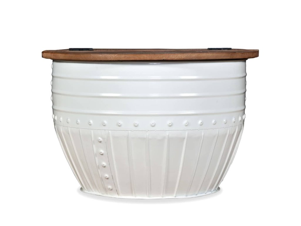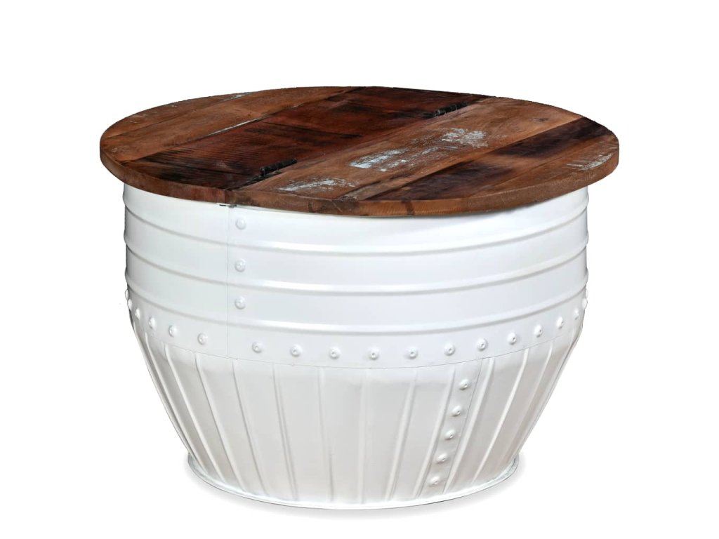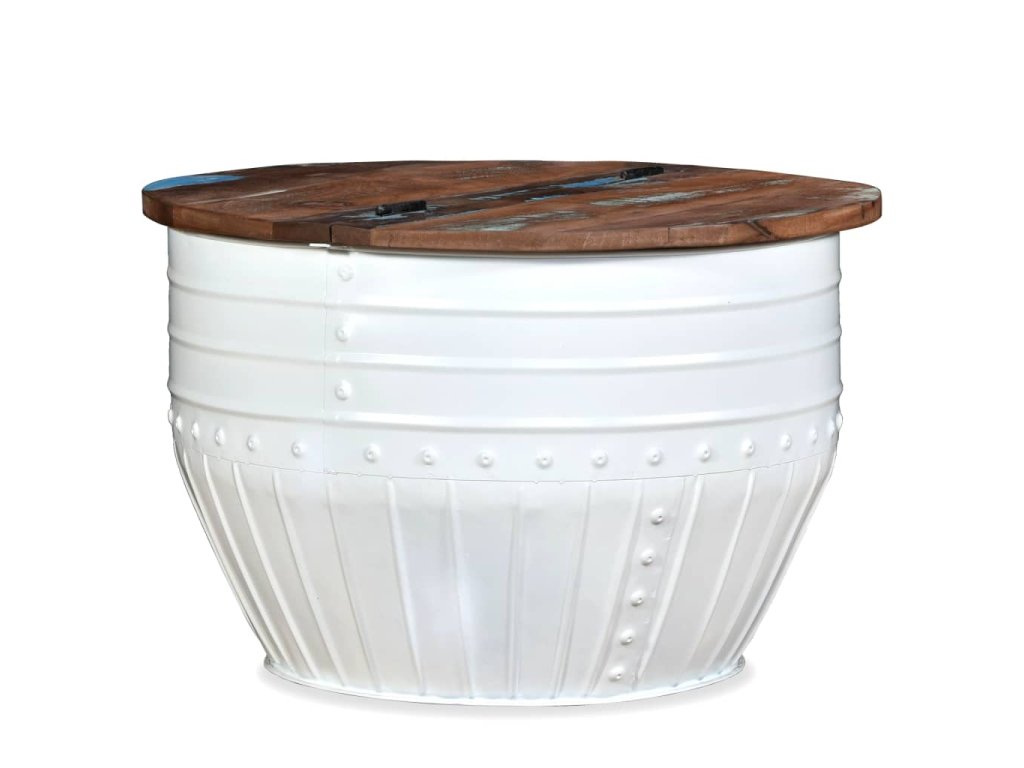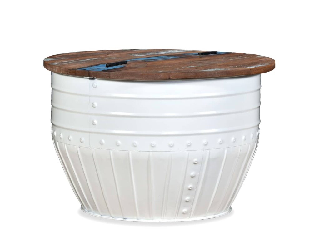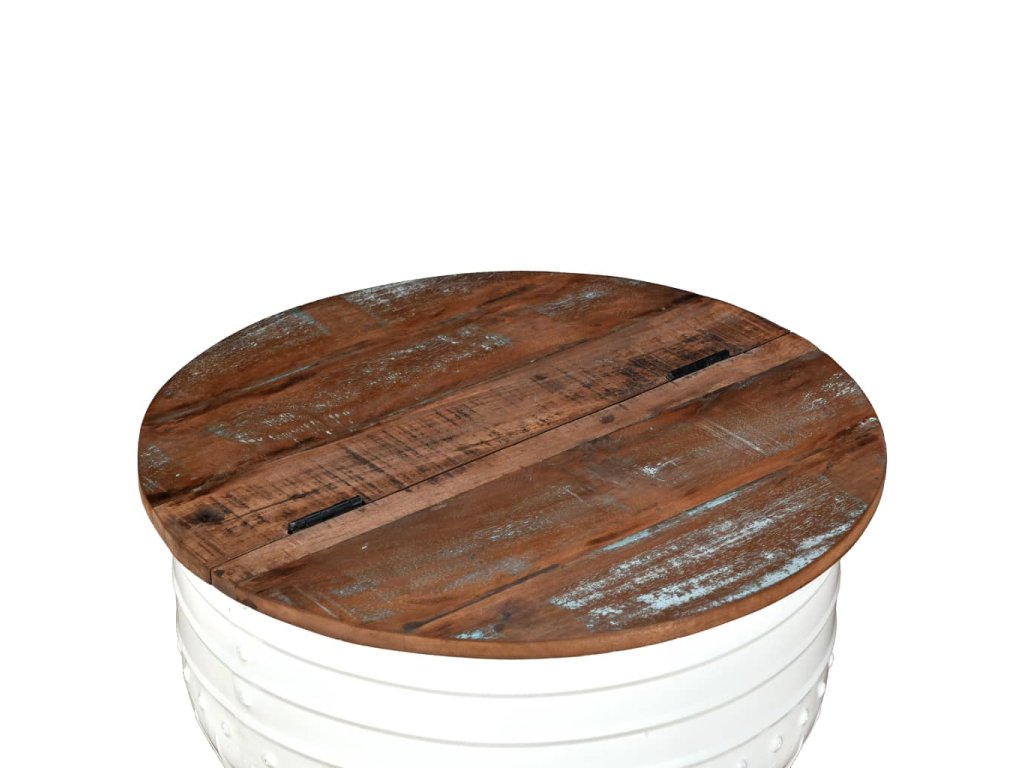 Tento jedinečný drevený konferenčný stolík v industriálnom dizajne predstavuje nadčasový doplnok do domácnosti. Jedinečná základňa v tvare sudu dotvára industriálny vzhľad stolíka.