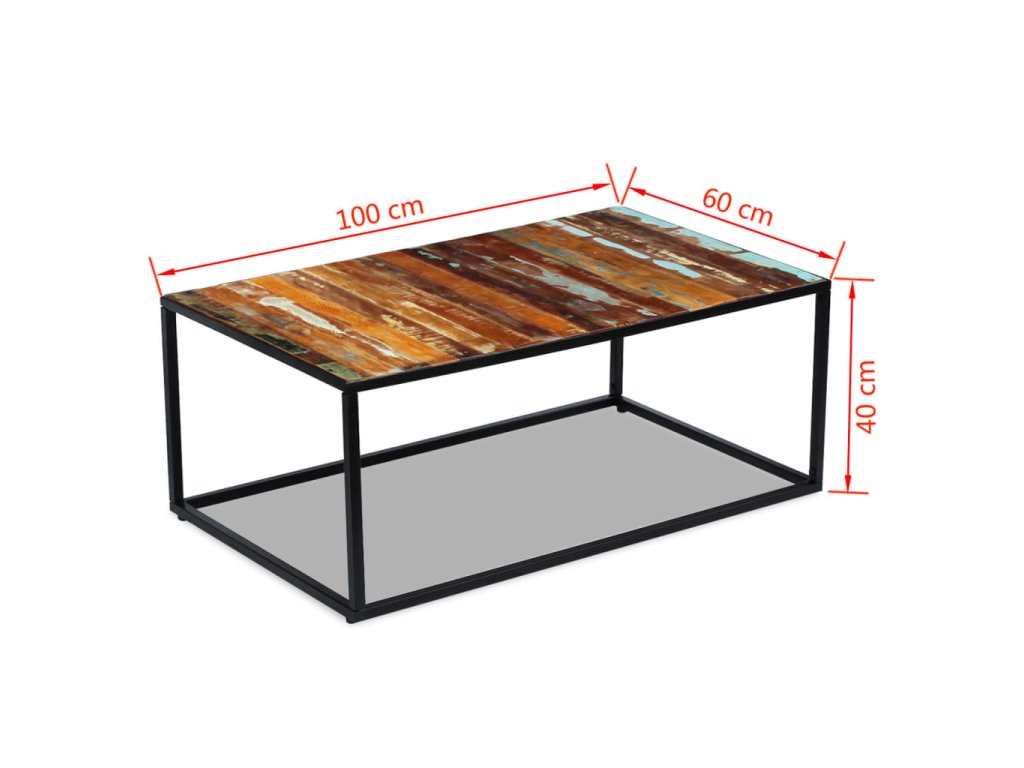 Stolík je vyrobený z recyklovaného masívu, ktorý je pevný, trvácny a krásny a má podobné vlastnosti ako napríklad tíkové, mangové, akáciové, recyklované, tvrdé drevo a podobne. Každý kus nábytku je jedinečný a trochu odlišný od ostatných. Známky opotrebovania a viditeľná textúra dreva odrážajú históriu jednotlivých kúskov nábytku a dodávajú im jedinečný vzhľad.