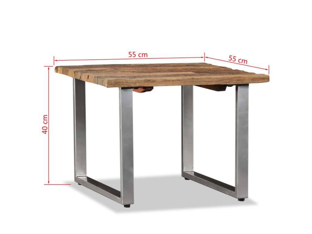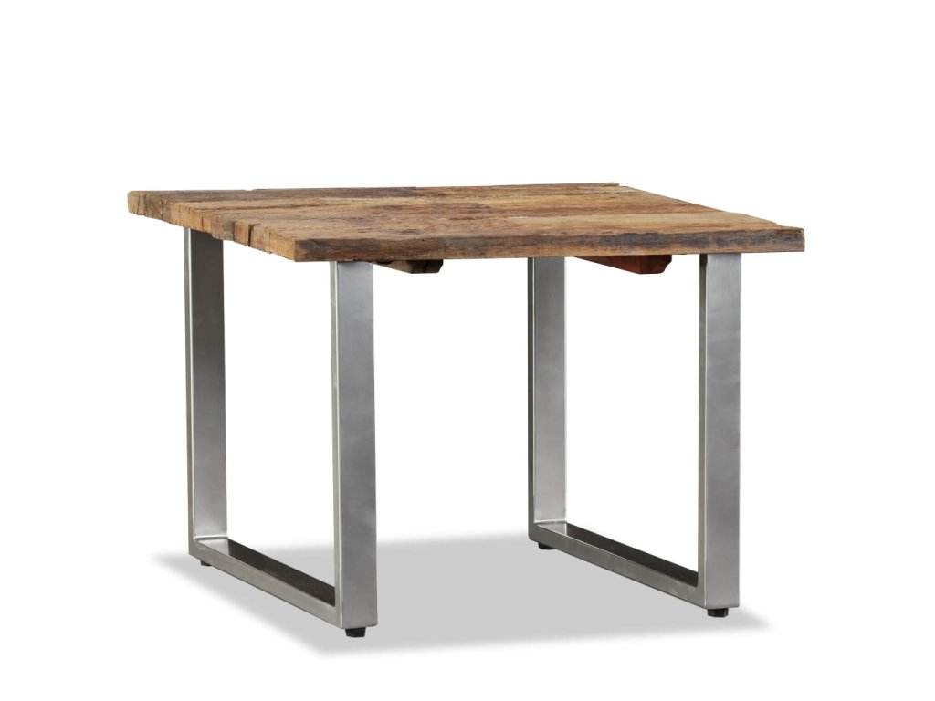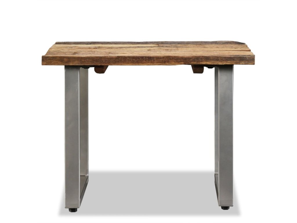 Stolík je ručne vyrobený z recyklovaného masívu. Drsný vzhľad a kvalitné remeselné opracovanie dodávajú stolíku pôsobivý retro dizajn. Každý krok výrobného procesu sa vykonáva s najväčšou starostlivosťou, či už je to leštenie alebo lakovanie. Vďaka krásnej textúre dreva je každý kus nábytku výnimočný a trochu odlišný od ostatných. Nohy sú vyrobené z trvácneho kovaného železa, ktoré stolíku prináša potrebnú pevnosť a stabilitu. Montáž je jednoduchá.
