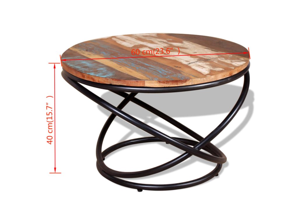 Stolík je vyrobený z recyklovaného masívu, ktorý je pevný, trvácny a krásny a má podobné vlastnosti ako napríklad tíkové, mangové, akáciové, recyklované, tvrdé drevo a podobne. Každý kus nábytku je jedinečný a trochu odlišný od ostatných. Známky opotrebovania a viditeľná textúra dreva odrážajú históriu jednotlivých kúskov nábytku a dodávajú im jedinečný vzhľad.