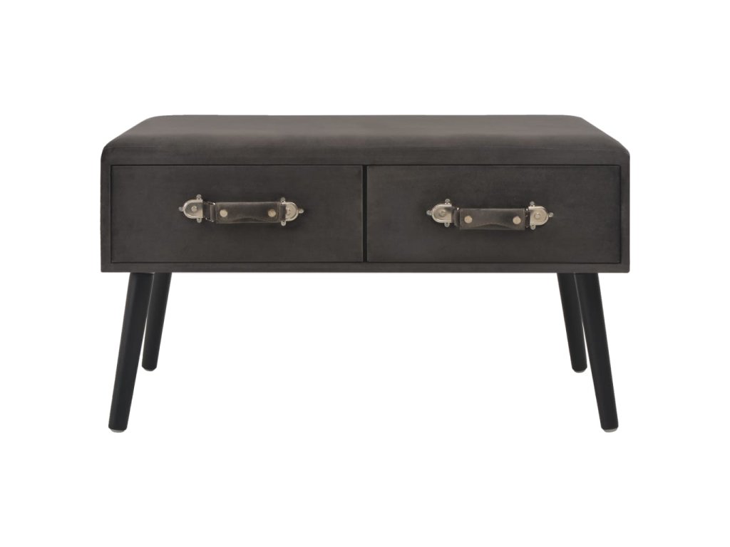 Konferenčný stolík je kvalitne vyhotovený zo zamatu a borovicového masívu, vďaka čomu je dostatočne pevný a odolný voči opotrebovaniu. Zamatová skrinka má dve zásuvky, ktoré sa hladko vysúvajú a ktoré poskytujú množstvo priestoru na odkladanie rôznych drobností, ktoré tak budete mať vždy poruke. Dá sa používať aj ako nočný stolík alebo lavička. Nočný stolík sa jednoducho montuje.