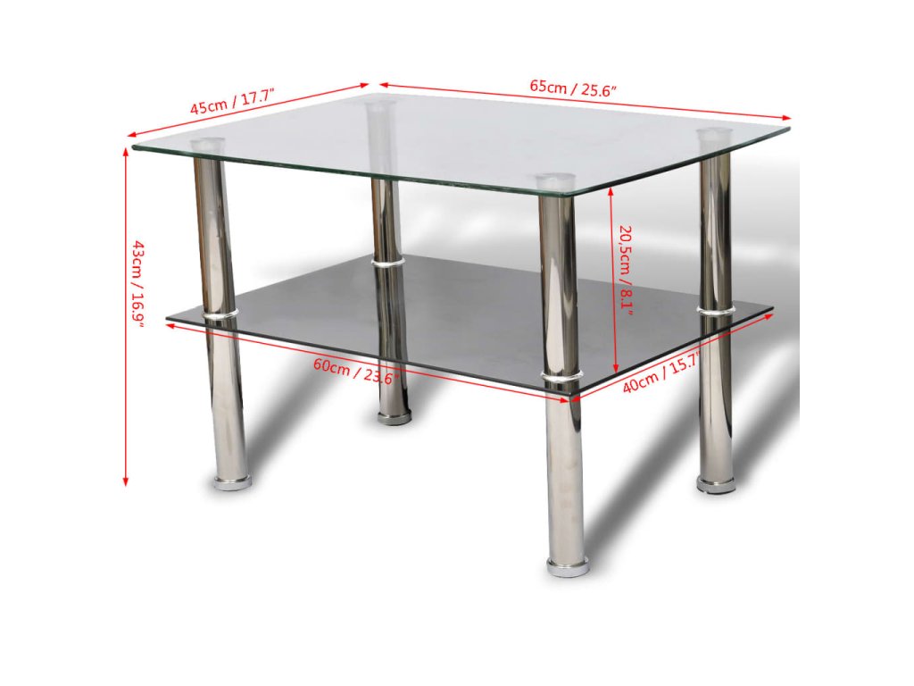 Konferenčný stolík pozostáva z tvrdeného skla a pevných nôh z nehrdzavejúcej ocele. Priestor medzi vrchnou doskou a policou skvele poslúži na odkladanie rôznych vecí.