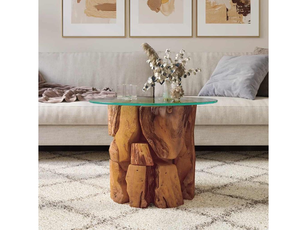 - Materiál s dlhou životnosťou: Tento nápadný drevený konferenčný stolík, ktorý sa vyznačuje pevnou podnožou z naplaveného teakového dreva v jedinečnom dizajne, vyžaruje rustikálny šarm a je skutočne pútavým prvkom.