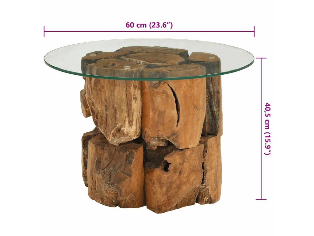 - Materiál: Podstavec z masívneho naplaveného teakového dreva + doska z tvrdeného skla