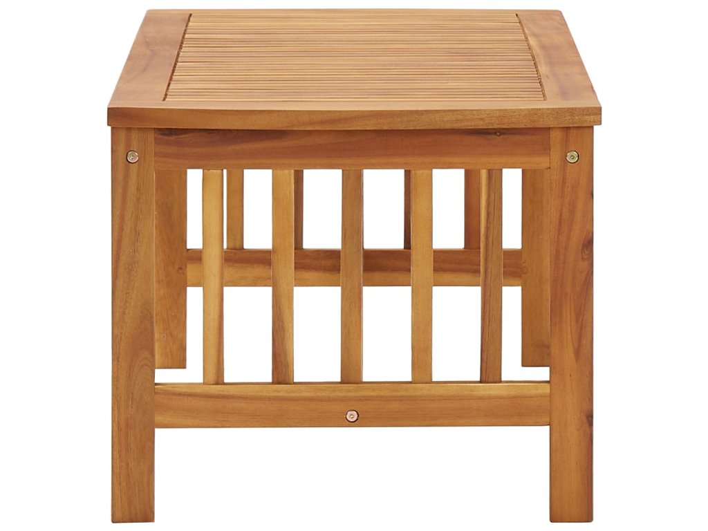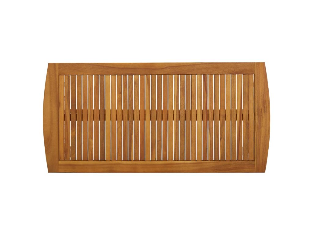 Tento gaučový stôl je vyrobený z masívneho dreva s olejovou povrchovou úpravou, vďaka čomu je stabilný a odolný. Vďaka remeselnému spracovaniu a krásnej drevenej štruktúre je každý kus nábytku jedinečný a mierne sa líši od iných kusov. Robustná stolová doska s lamelovým dizajnom vám navyše ponúka priestor na odloženie občerstvenia, ovocných košov, dekoratívnych predmetov a ďalších potrebných vecí.