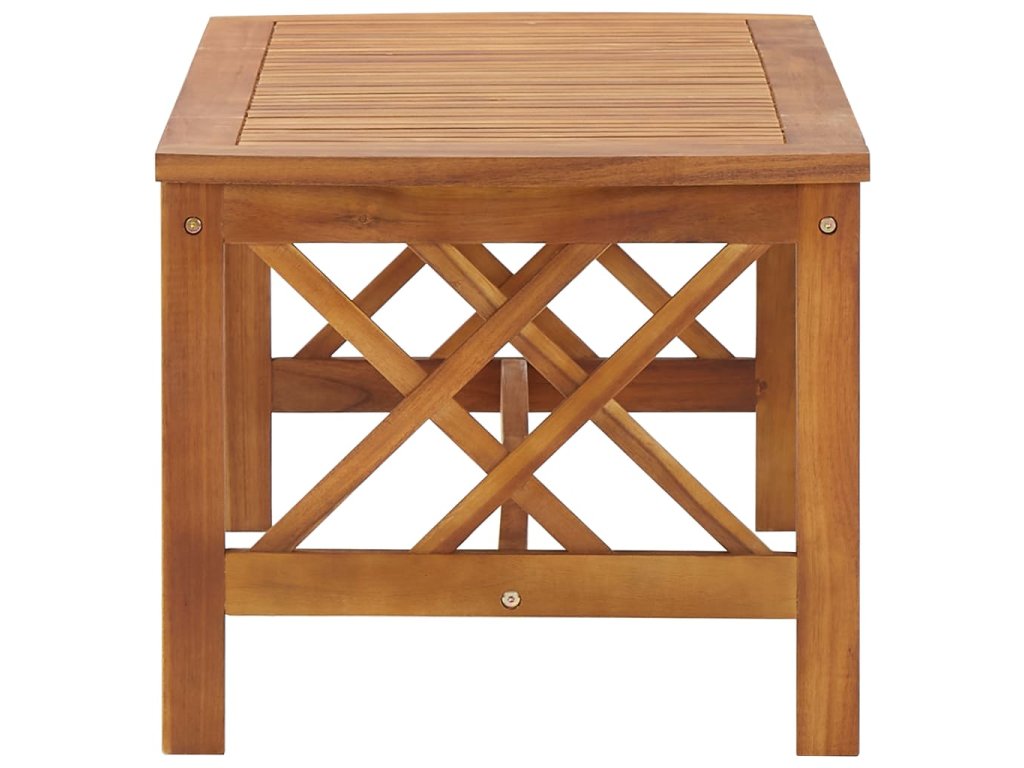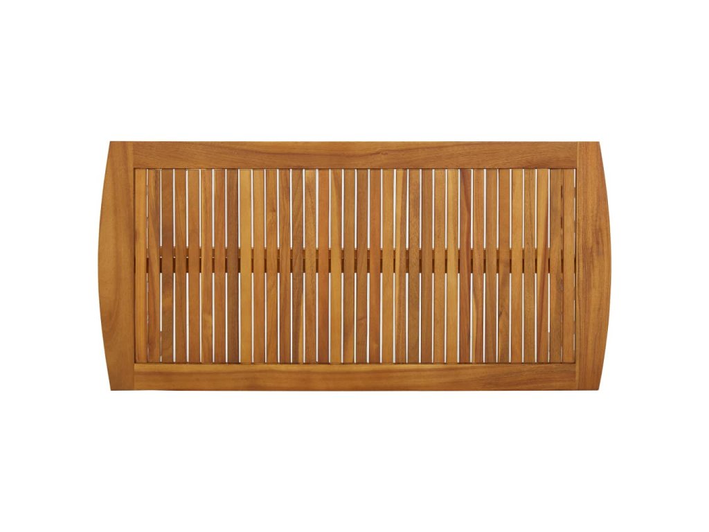 Tento gaučový stôl je vyrobený z masívneho dreva s olejovou povrchovou úpravou, vďaka čomu je stabilný a odolný. Vďaka remeselnému spracovaniu a krásnej drevenej štruktúre je každý kus nábytku jedinečný a mierne sa líši od iných kusov. Robustná stolová doska s lamelovým dizajnom vám navyše ponúka priestor na odloženie občerstvenia, ovocných košov, dekoratívnych predmetov a ďalších potrebných vecí.