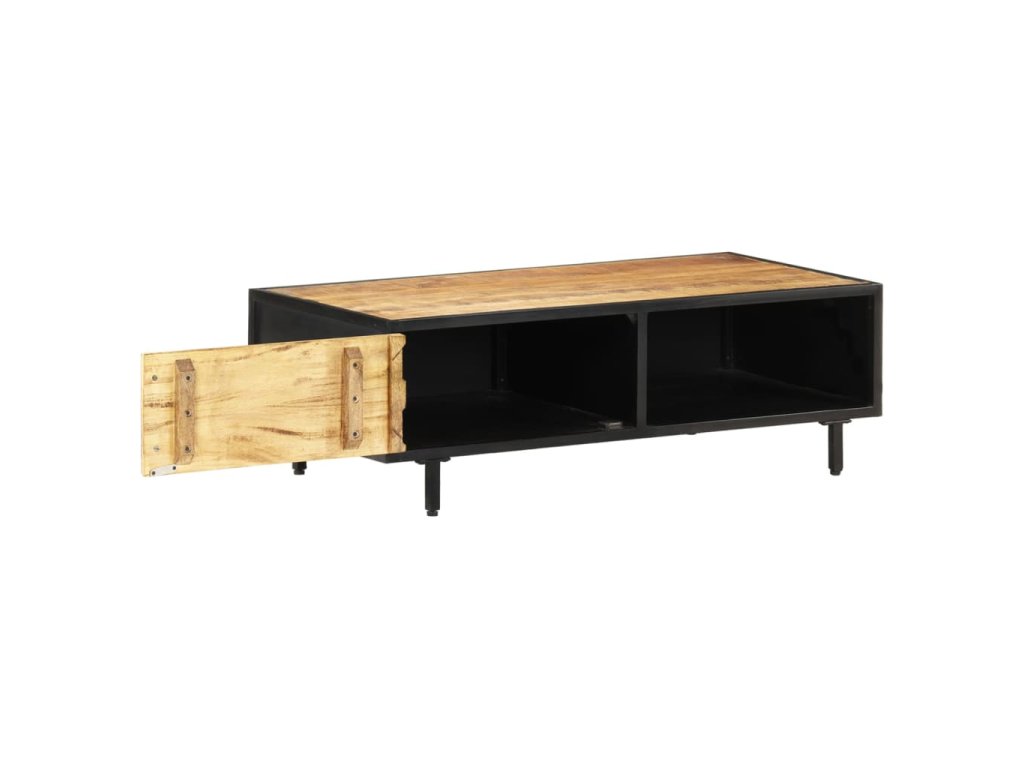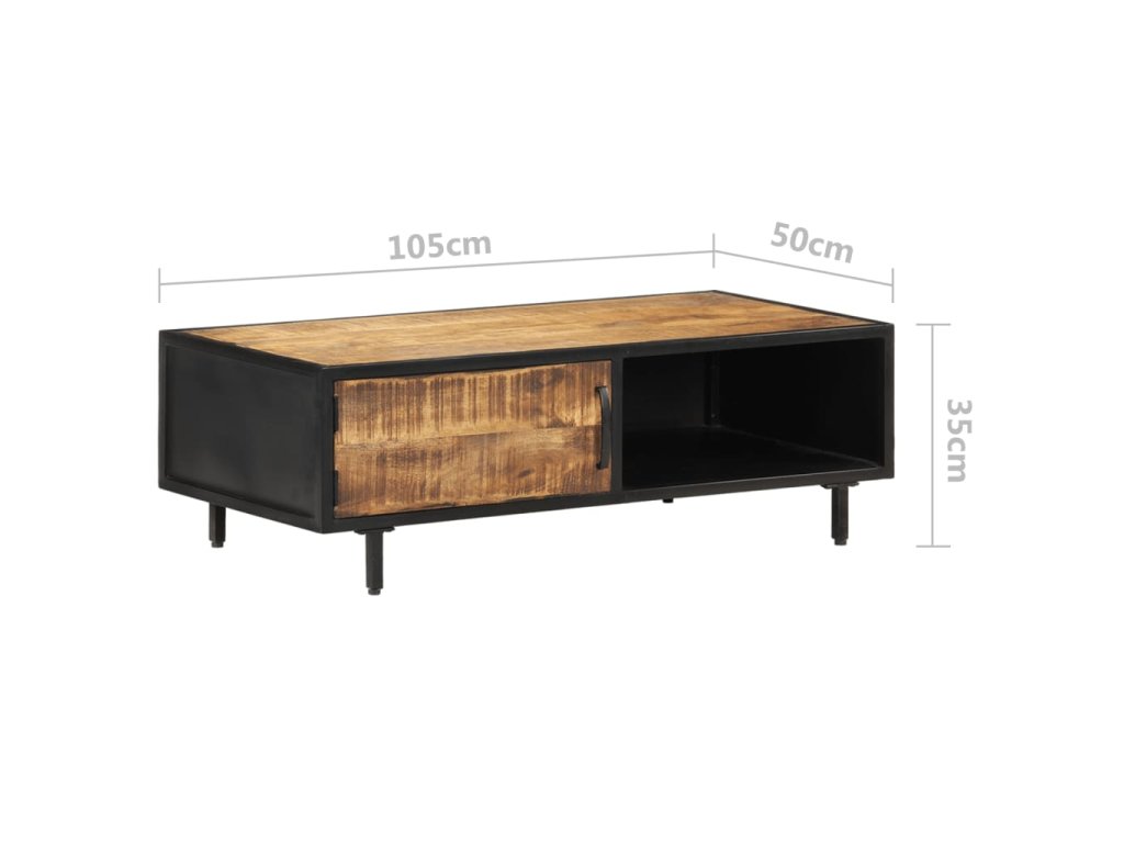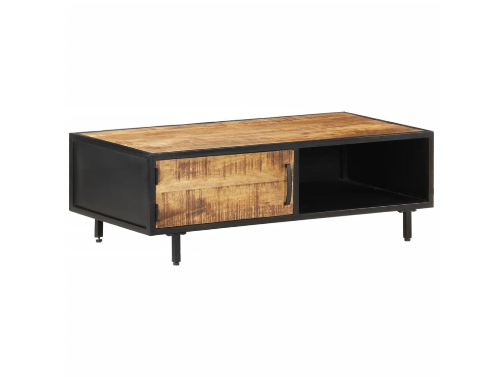 Gaučový stolík je vyrobený z hrubého mangovníkového dreva, tropického tvrdého dreva s pevnosťou uniesť aj vyššiu hmotnosť. Odoláva aj opotrebovaniu časom, takže je stabilný a odolný. Oceľový rám s práškovým nástrekom poskytuje skvelú stabilitu. Tento stolík má 1 dvierka a 1 policu, ktoré poskytujú dostatok úložného priestoru. Pevná drevená doska je navyše ideálna na vystavenie dekoratívnych predmetov, ako sú fotorámiky, rastliny v črepníkoch, vázy atď.