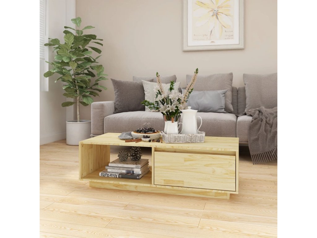 Stôl k pohovke je vyrobený z masívneho borovicového dreva, ktoré zaručuje jeho pevnosť, odolnosť a dlhodobú životnosť. Robustná stolová doska je ideálna na umiestnenie občerstvenia, nápojov, váz, misiek s ovocím alebo iných dekoratívnych predmetov. Vďaka úložnej polici udrží tento príručný stolík váš obývací priestor uprataný. Je ideálna na umiestnenie kníh, časopisov alebo drobných predmetov, ktoré chcete mať na dosah. Stolík sa navyše ľahko čistí vlhkou handričkou.