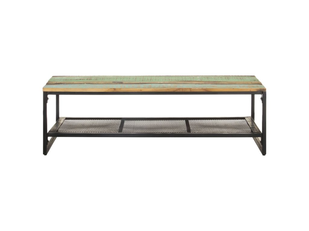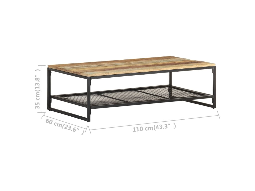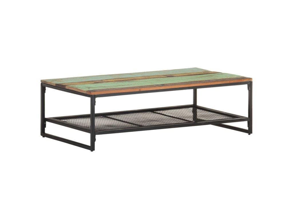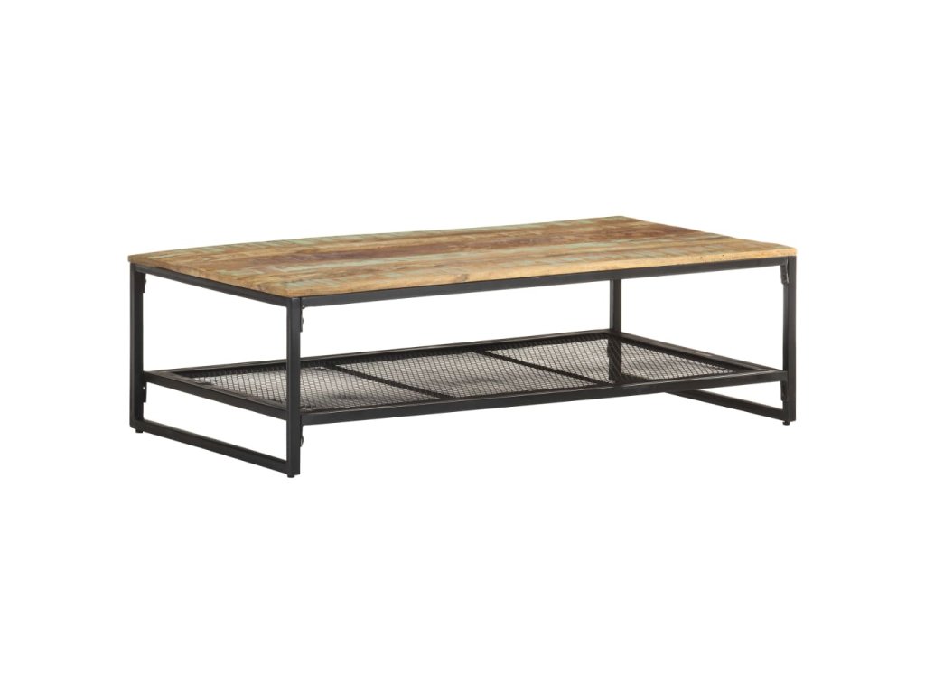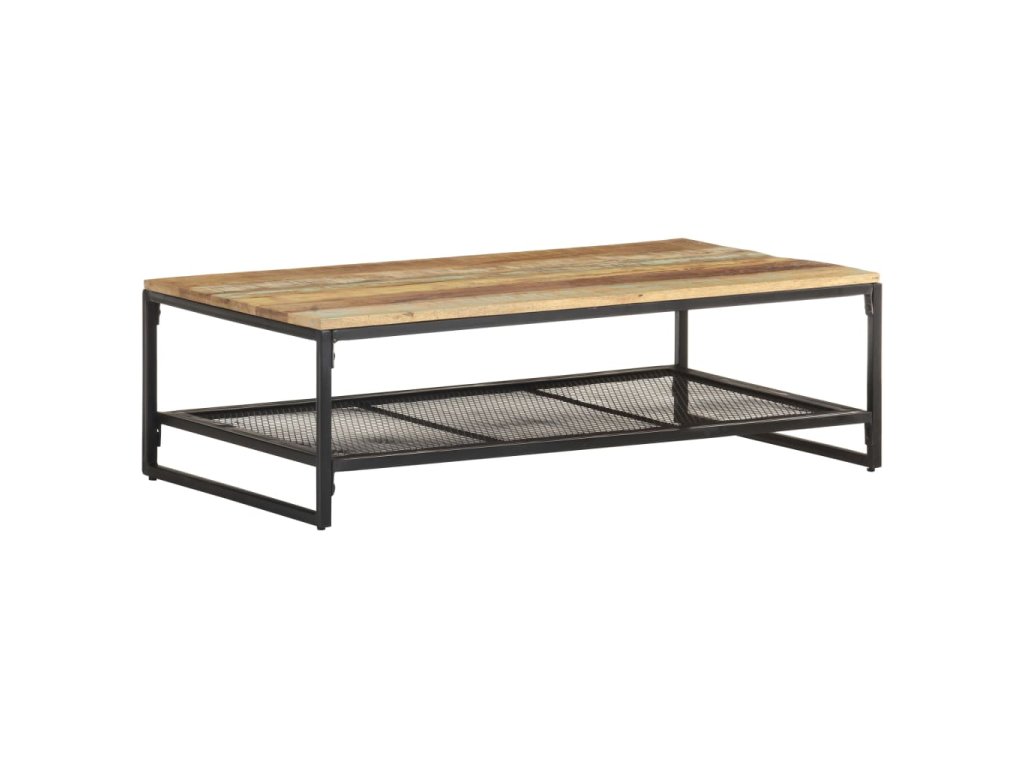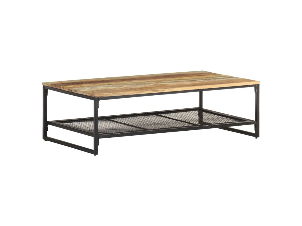 Stolík ku gauču je vyrobený z recyklovaného masívu, ktorý pochádza z trámov, podláh a nosníkov zo starých zbúraných stavieb a pozostáva z rôznych typov dreva, ako napríklad borovicového, tíkového, dubového, mangového či akáciového dreva. Recyklované drevo sa preto vyznačuje vlastnosťami týchto typov dreva. Recyklované drevo je staré, zvetrané a usušené, a preto sa nezmršťuje ani neohýba. Železné nohy s práškovou povrchovou úpravou stolíku dodávajú potrebnú pevnosť. 1 polička poskytuje praktický úložný priestor na rôzne predmety.
