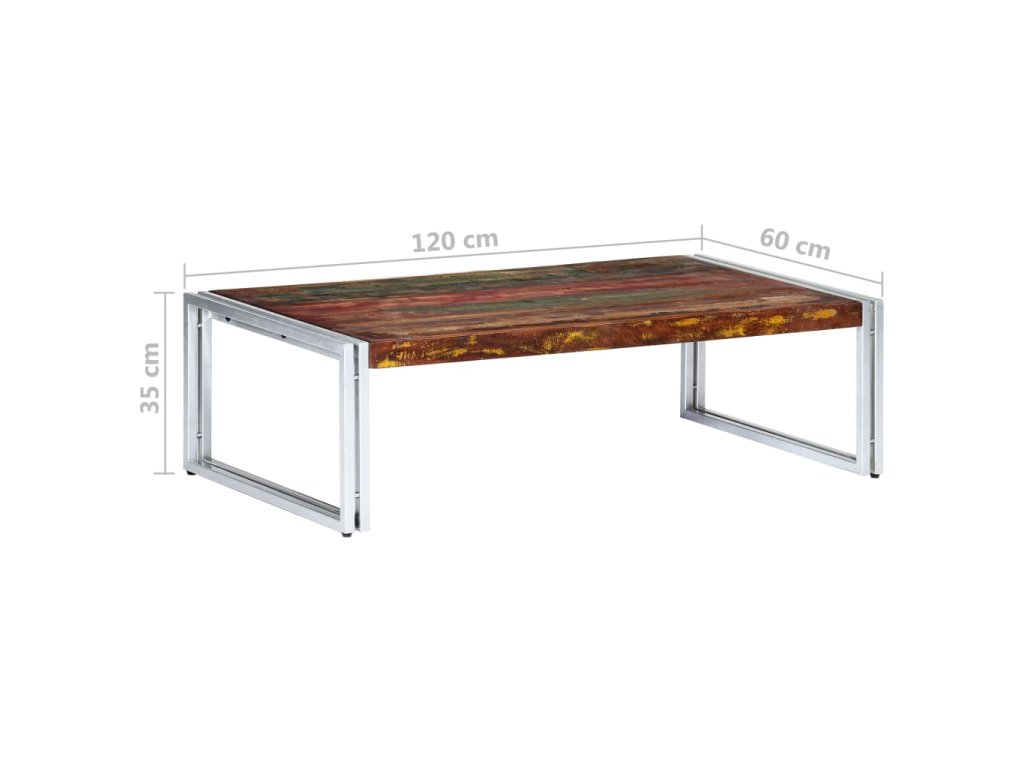 Stolík ku gauču je vyrobený z recyklovaného masívu, ktorý pochádza z trámov, podláh a nosníkov zo starých zbúraných stavieb a pozostáva z rôznych typov dreva, ako napríklad borovicového, tíkového, bukového, dubového, cédrového, mangového či akáciového dreva. Recyklované drevo sa vyznačuje všetkými vlastnosťami týchto typov dreva. Je staré, zvetrané a usušené, a preto sa nezmršťuje ani neohýba. Vďaka vynikajúcemu remeselnému opracovaniu a krásnej textúre dreva je každý kus nábytku jedinečný a trochu odlišný od ostatných. Príručný stolík je kompletne ručne vyrobený a každý krok výrobného procesu sa vykonáva s maximálnou starostlivosťou, či už je to leštenie, natieranie alebo lakovanie. Rám s práškovou povrchovou úpravou stolíku do obývačky navyše dodáva potrebnú stabilitu a zároveň umocňuje jeho industriálny vzhľad. Výrobok sa jednoducho montuje.