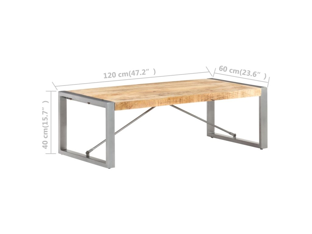Konferenčný stolík je vyrobený zo surového mangového masívu, vďaka čomu je skutočne stabilný a trvácny. Mangový masív je drevo tropického listnatého stromu, ktoré je dostatočne pevné na to, aby unieslo aj značnú váhu, no zároveň odoláva každodennému opotrebovaniu. Oceľové nohy s práškovou povrchovou úpravou stolíku prinášajú potrebnú stabilitu. Konferenčný stolik poslúži aj ako stolík ku gauču, príručný stolík či stolík do obývačky.