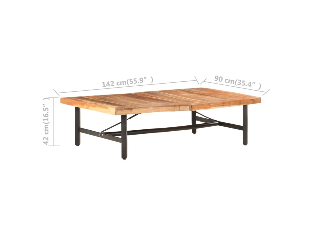 Stredový stolík je vyrobený z masívneho akáciového dreva, tvrdého dreva s bohatou štruktúrou. Krásne navrhnutý stolík je stabilný, odolný, ale aj pútavý. Vďaka vynikajúcemu remeselnému spracovaniu a krásnej drevenej štruktúre sa každý kus mierne líši od iných kusov. Stolík k pohovke má železné nohy s práškovým nástrekom, vďaka ktorým je stabilný a odolný. Stolová doska je ideálna na umiestnenie nápojov, ovocných mís alebo ozdôb.