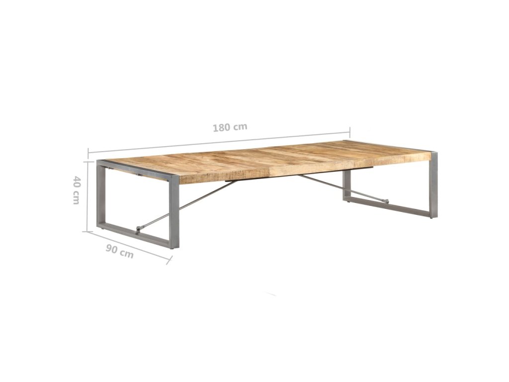 Stolík ku gauču je vyrobený zo surového mangového dreva, vďaka čomu je skutočne stabilný a trvácny. Mangový masív je drevo tropického listnatého stromu, ktoré je dostatočne pevné na to, aby unieslo aj značnú váhu, no zároveň odoláva každodennému opotrebovaniu. Vďaka remeselnému opracovaniu a krásnej textúre dreva je každý kus nábytku jedinečný a trochu odlišný od ostatných. Pevné oceľové nohy s práškovou povrchovou úpravou stolu dodávajú extra stabilitu.