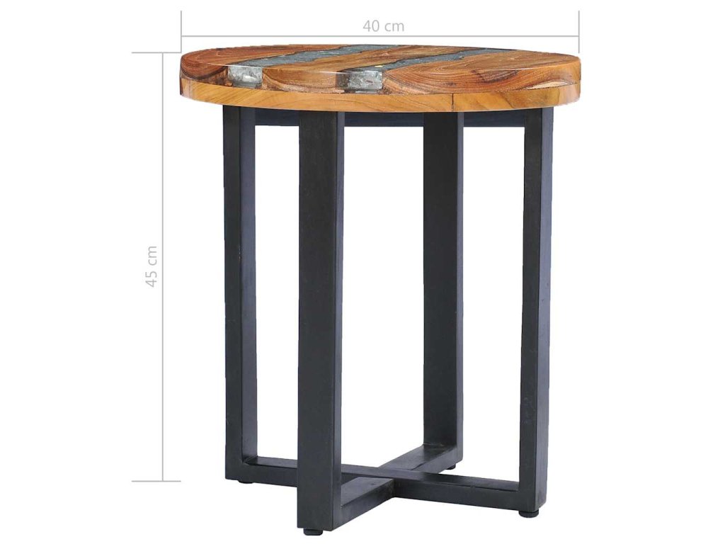Z tohto úžasného konferenčného stolíka, vyrobeného z masívneho teakového dreva a polyresinu, vyžaruje vidiecky šarm a je naozaj pútavým kusom nábytku. Jeho okrúhla doska poskytuje stabilný a bezpečný povrch, na ktorý môžete umiestniť nápoje, vázy, ovocné misky alebo ozdoby. Konferenčný stolík môže byť tiež použitý aj ako bočný stôl.