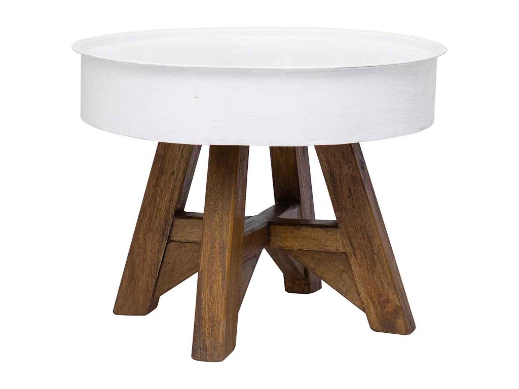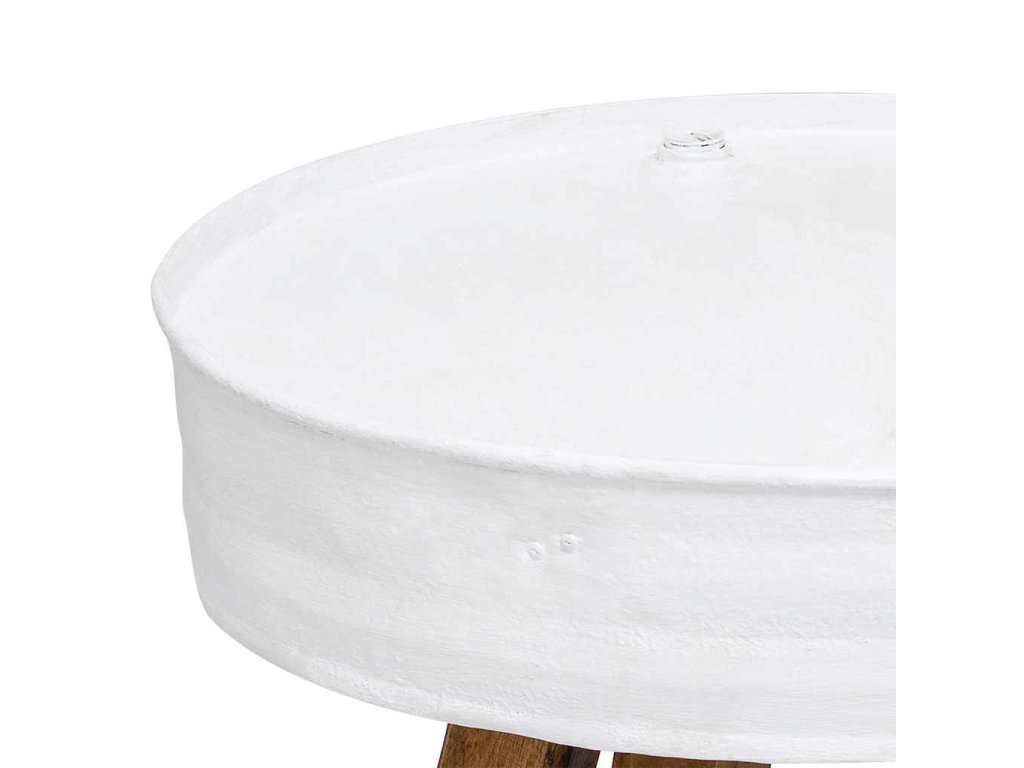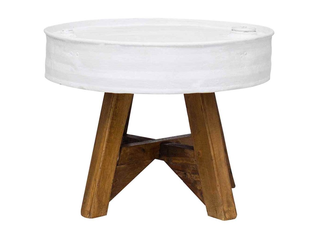 Nohy tohto konferenčného stolíka sú vyrobené z masívneho recyklovaného dreva, ktoré má vlastnosti rôznych druhov drevín, ako je napríklad mahagónové, teakové, mangovníkové alebo akáciové drevo. Každý kus tohto nábytku je jedinečný a trochu odlišný od ostatných kusov. Znaky opotrebovania dodávajú každému kusu nábytku jedinečný vzhľad. Vďaka tomu zo stolíka vyžaruje starožitný štýl. Pretože je tento výrobok vyrobený z recyklovaného dreva, môže vykazovať drobné nedokonalosti, ktoré odrážajú jeho autentickú hodnotu a bohatú históriu. Drevo pochádza z prirodzene spadnutých stromov, lodí, drevených domov, atď. Oceľová doska stola bola vyrobená z recyklovaného sudu a dodáva konferenčnému stolíku priemyselný vzhľad.