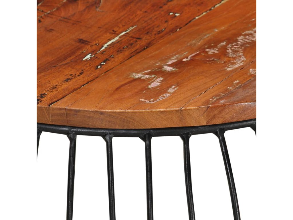 Tento krásny stolík je ručne vyrobený z masívneho recyklovaného dreva, ktoré sa skladá z kombinácie regenerovaného dreva vrátane teakového dreva, mangovníkového dreva, borovicového dreva, bukového dreva a podobne. Tieto drevá sú recyklované zo starých budov, ako sú továrne, kôlne a lode. Vďaka tomu ide o fantastickú ekologickú možnosť výroby nábytku. Keďže je každý kus vyrábaný ručne, farby sa líšia, a objavuje sa mnoho modrých, zelených, krémových a niekedy aj oranžových, červených a ružových odtieňov. To tiež znamená, že každý zo stolíkov je jedinečný! Drevená vrchná doska poskytuje dostatok priestoru na udržanie rôznych drobností na dosah ruky. Rám z práškovaného železa dodáva stolíku pevnosť a stabilitu.