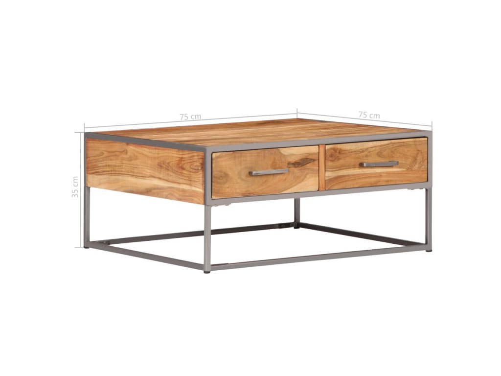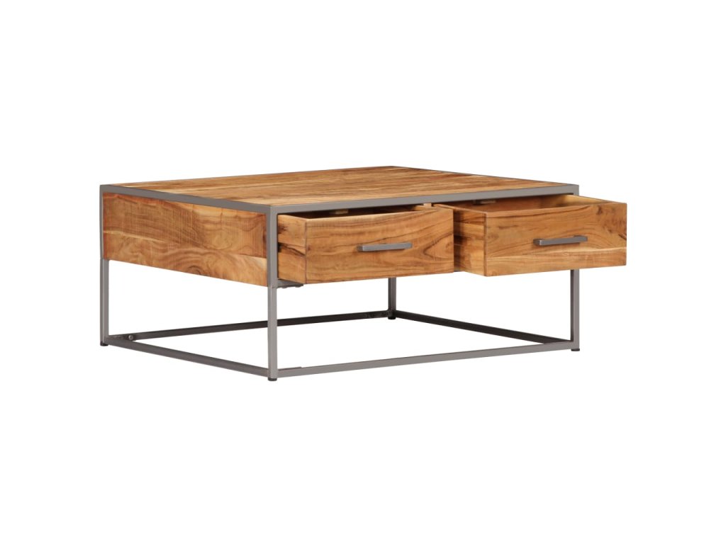 Stolík ku gauču v starožitnom štýle je vyrobený z masívneho akáciového dreva, ktoré bolo leštené a lakované, čo mu dodáva dokonalý vzhľad. Vďaka remeselnému spracovaniu a elegantnej štruktúre dreva je každý kus nábytku jedinečný a mierne odlišný od ostatných. Tento stolík do obývacej izby v priemyselnom štýle je ručne vyrobený a každý krok procesu výroby sa vykonáva s najväčšou starostlivosťou, či už ide o leštenie alebo lakovanie. Príručný stolík obsahuje 2 zásuvky, ktoré poskytujú dostatok priestoru na uloženie multimediálnych zariadení, kníh a rôznych ďalších predmetov.