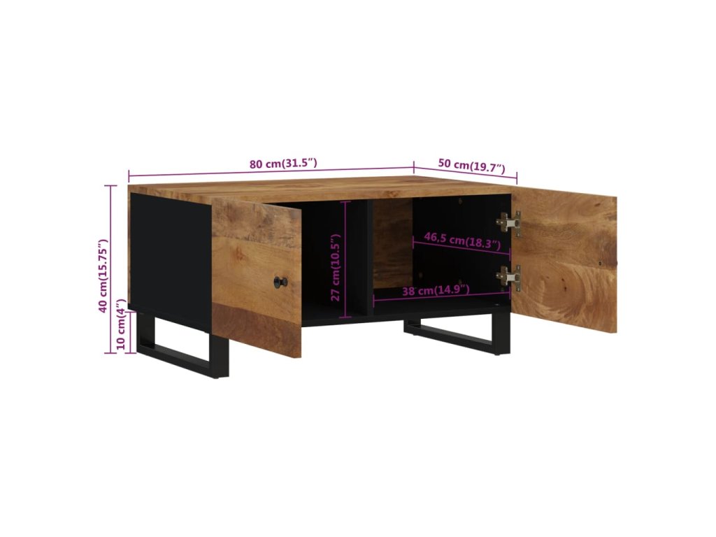 - Materiál: Masívne mangovníkové drevo s medoovo-hnedou povrchovou úpravou, spracované drevo, kov