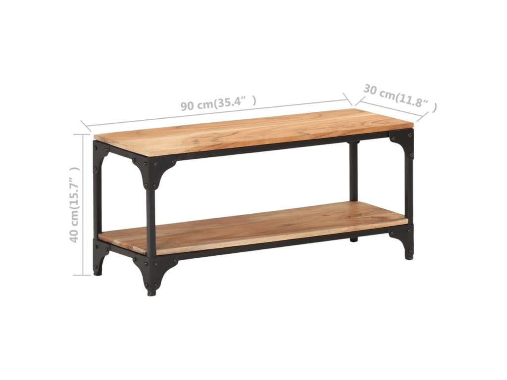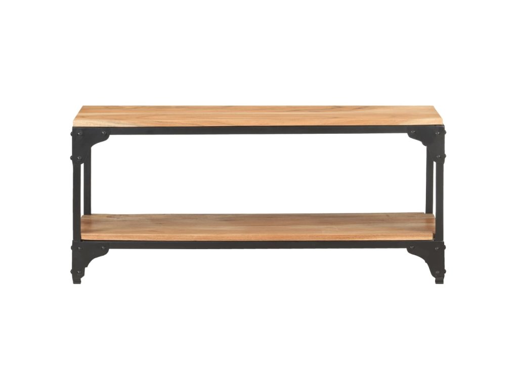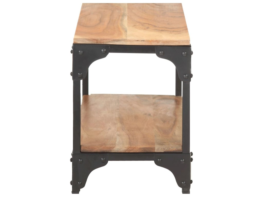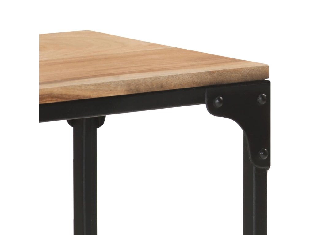 Gaučový stolík je vyrobený z masívneho akáciového dreva, čo je tvrdé drevo s hustou štruktúrou. Tento stôl s krásnym dizajnom je stabilný, odolný a pútavý. Vďaka vynikajúcemu remeselnému spracovaniu a krásnej štruktúre dreva je každý kus trochu iný od ostatných. Oceľový rám s čiernym práškovým nástrekom poskytuje dodatočnú stabilitu a odolnosť. Polička pod doskou poskytnú dostatok priestoru na uloženie časopisov, kníh a iných drobností, ktoré budete mať usporiadané a na dosah ruky.