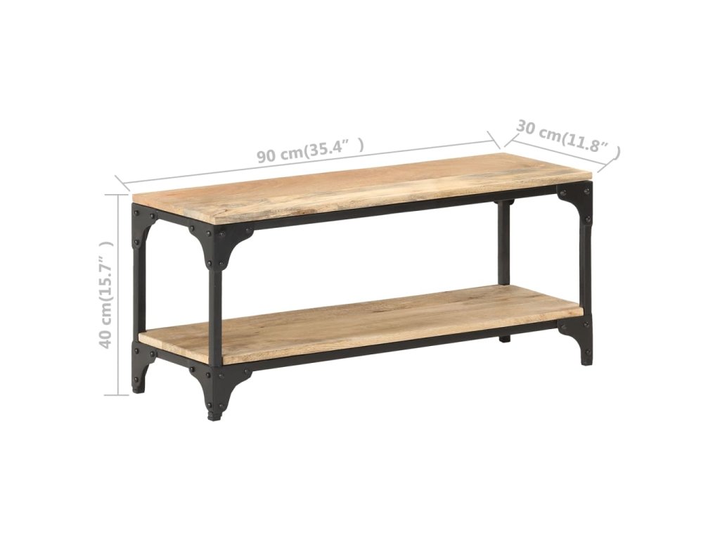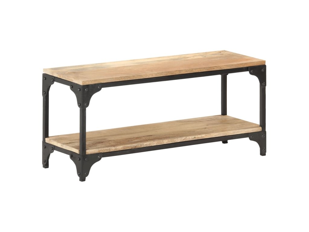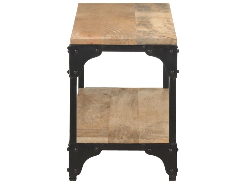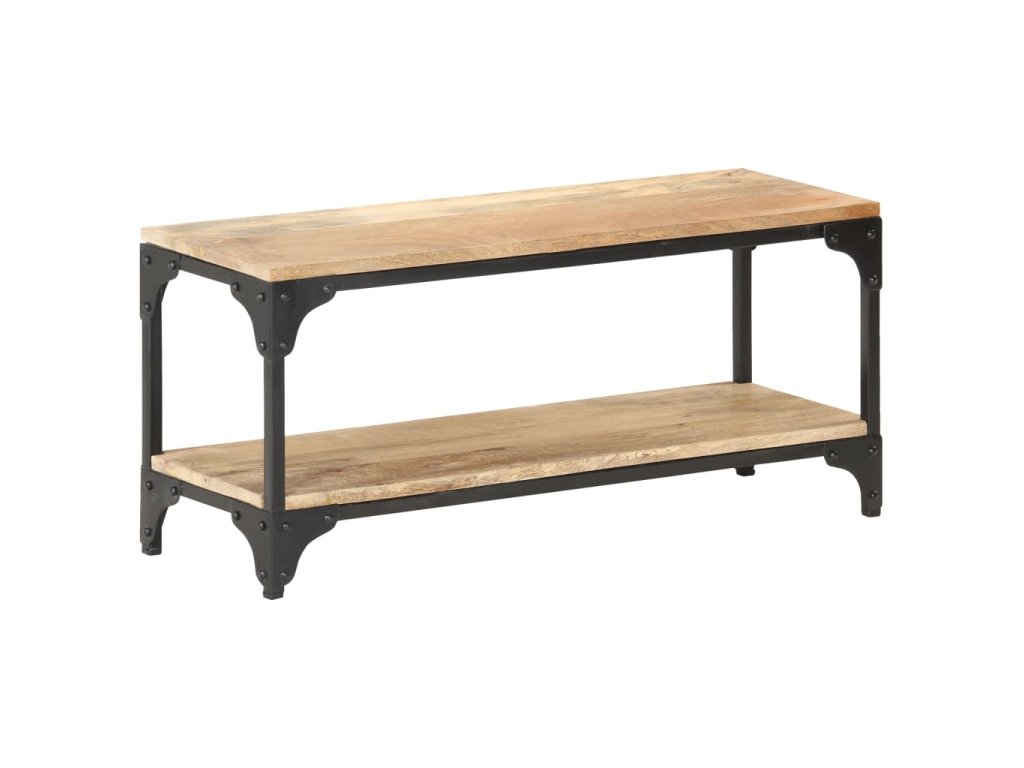 Tento gaučový stolík je vyrobený z masívneho mangovníkového dreva, čo je tropické tvrdé drevo. Má silu uniesť aj vyššiu hmotnosť a tiež odolávať opotrebovaniu. Navyše, vďaka vynikajúcemu remeselnému spracovaniu a krásnej štruktúre dreva sa každý kus mierne líši od ostatných kusov. Oceľový rám s čiernym práškovým nástrekom poskytuje dodatočnú stabilitu a odolnosť. Polica pod stolovou doskou poskytuje dostatok úložného priestoru na uloženie časopisov, kníh a iných menších vecí, ktoré máte usporiadané a na dosah ruky.