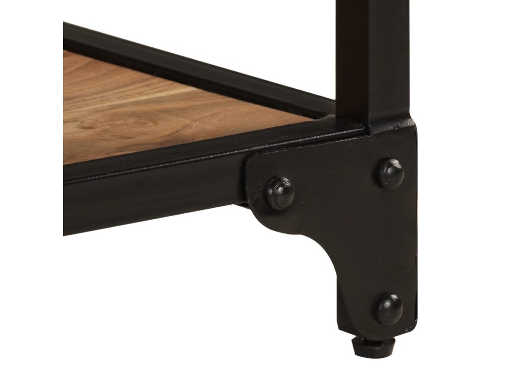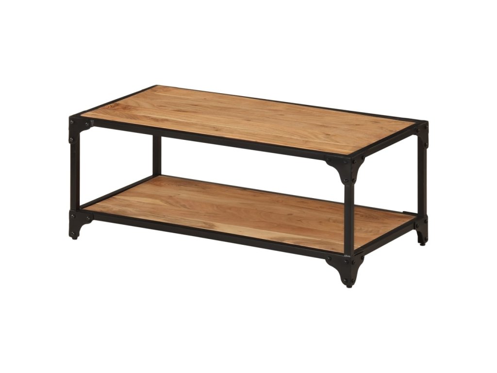 Bočný stolík je vyrobený z masívneho akáciového dreva s hnedými pruhmi. Vďaka vynikajúcemu remeselnému spracovaniu a krásnej štruktúre dreva je každý kus mierne odlišný od ostatných. Vďaka pevnému železnému rámu je konferenčný stolík veľmi stabilný a trvácny. Vrch stola poskytuje stabilný a bezpečný povrch, na ktorý si môžete položiť vaše nápoje, ovocné misy, vázy či iné dekoratívne predmety. Polica v spodnej časti poskytuje dostatočný priestor pre odloženie multimediálnych zariadení, kníh, časopisov a ďalších vecí, ktoré si chcete nechať na dosahu ruky. Konferenčný stolík môže byť tiež využívaný ako stolík ku gauču, obývačkový stolík, nočný stolík, a podobne.