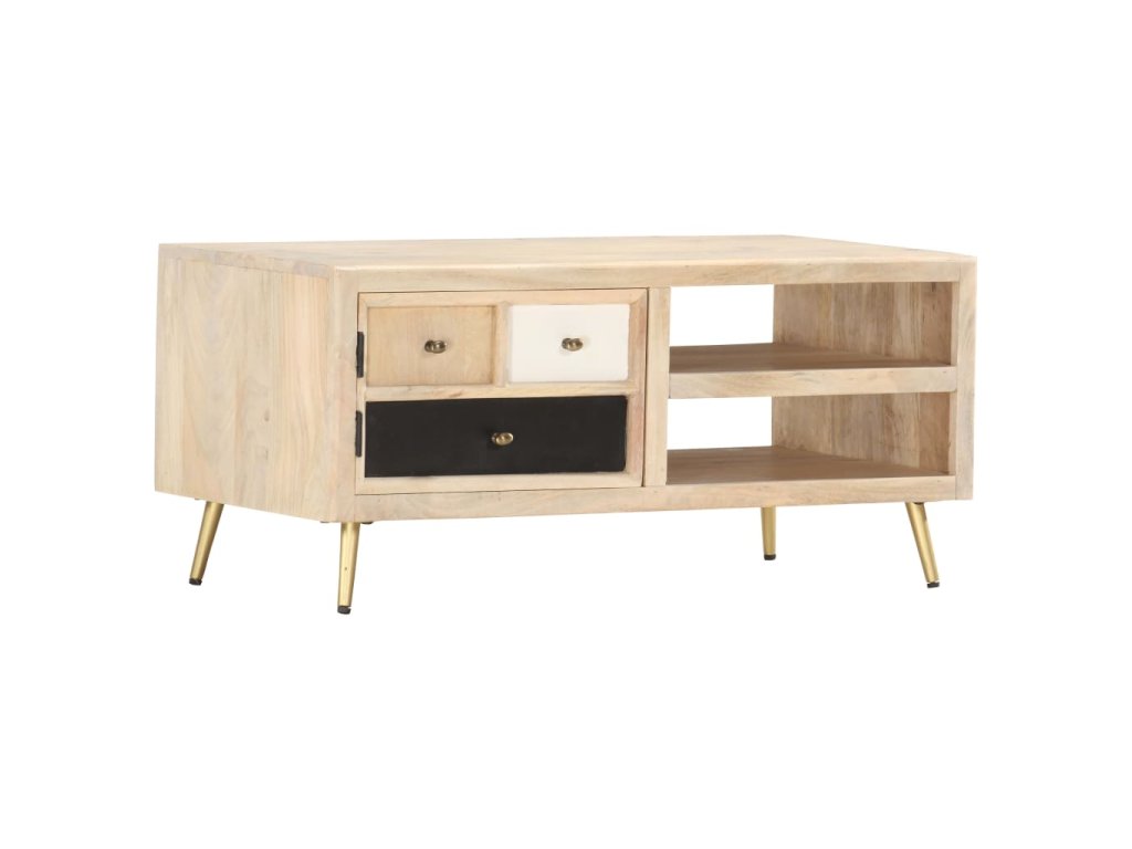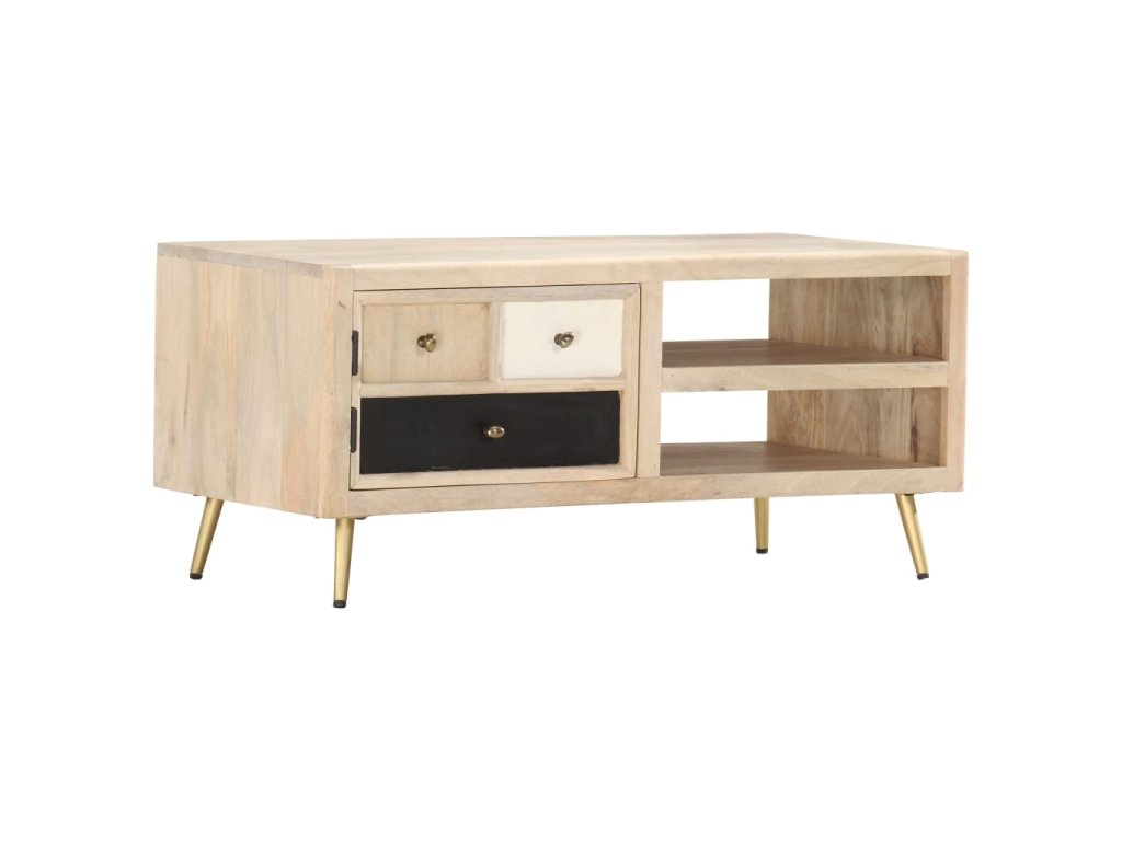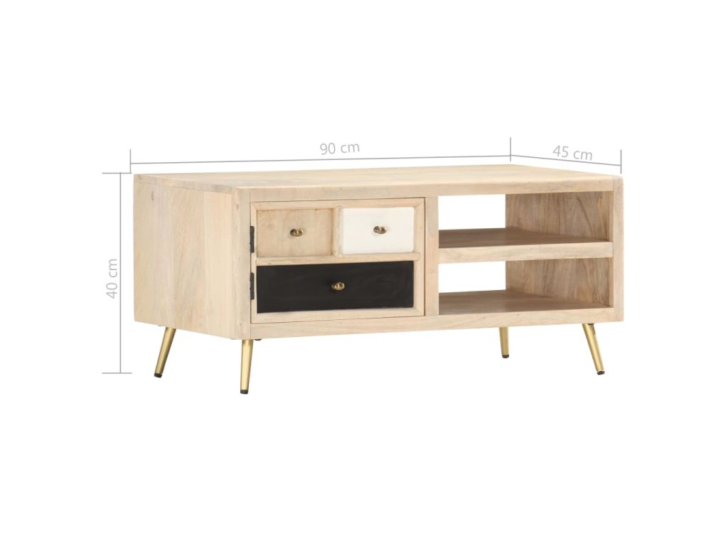 Stolík ku gauču je vyrobený z masívneho mangovníkového dreva, ktoré je stabilné, trvácne a krásne. Remeselné spracovanie mu dodáva pôsobivý retro štýl. Každý krok výrobného procesu sa vykonáva s najväčšou starostlivosťou, či už je to leštenie, natieranie alebo lakovanie. Vďaka remeselnému spracovaniu a krásnej štruktúre dreva je každý kus tohto nábytku jedinečný a trochu odlišný od ostatných kusov. Tento stolík má pevný a stabilný povrch, na ktorý môžete umiestniť nápoje, jedlo, ovocné koše alebo ozdoby. Konferenčný stolík sa jednoducho montuje.